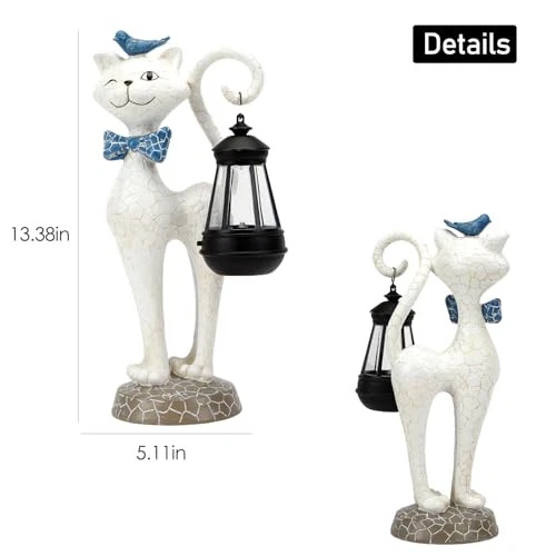 30 Days Return Policy Fast Delivery Trusted seller Solar Outdoor Garden Statues Light,Cat Figurines with Cute Birds Garden Sculpture Decor, Unique Christmas Gifts for Women, Men or Daughter, Housewarming gifts and Yard Decoration Product Description Charming Garden Companion - This adorable white cat statue comes to life at night with a glowing lantern, powered by solar energy. Perfect for bringing warmth and charm to any space, indoors or out. Perfect for cat lovers, garden and anyone looking to add a unique accent! Automatic On/Off Functionality - Let the sun do the work! Our cat decor lights are powered by solar energy and will be automatically charged during the day. The outdoor lights automatically turn on at dusk and off at dawn, providing seamless lighting without any manual intervention. Lighting Up More Time Solar Ourdoor Lights - With their IP65 waterproof rating, these solar garden lights are built to withstand various weather conditions, ensuring long-lasting performance even during rainy or snowy days. The outdoor solar lights can light up for 8-10 hours during all night after a 6-8 hours solar charged in day even if it is a cloudy or rainy day. Versatile Applications - The lights are a good choice for you to decorate Christmas, illuminate the roads of your home, create a strong festive atmosp, and welcome your neighbors and guests to join your Christmas party! Our solar lights are perfect for enhancing your home, house, yard, garden, patio, front porch, backyard, walkway, landscape, lawn ect. Perfect Gift for All Occasions – With its playful design and enchanting light, this cat statue makes a thoughtful gift for birthdays, Housewarmings, Wedding, Mothers Day, Fathers Day, Valentines Day and Christmas any special occasion. It can bring a fantastic experience for Mom;Grandma;Wife;Daughter;Sister;Aunt;girlfriend. Shipping Returns Payment Shipping Shipping is FREE to all addresses other than APO/PO boxes in the lower 48 states. All our stock ships from US-based warehouses. Shipped via USPS or UPS (depending on location and package weight) Unless stated otherwise, all orders will ship within 24-72 hours of your payment being processed. Check our feedback to see the great reviews of FAST shipping we offer. Returns As our valued customer, we will do our best to make sure the product you receive arrives to you on time and as expected. If you are not satisfied with your purchase, please contact us within 30 days of receiving your order to process a return. Payment We currently accept payment via eBay managed payments only. Once payment is cleared, we will dispatch your shipment within 1-3 business days. Please refer to the "Shipping" tab for more information regarding shipping speed to your destination.