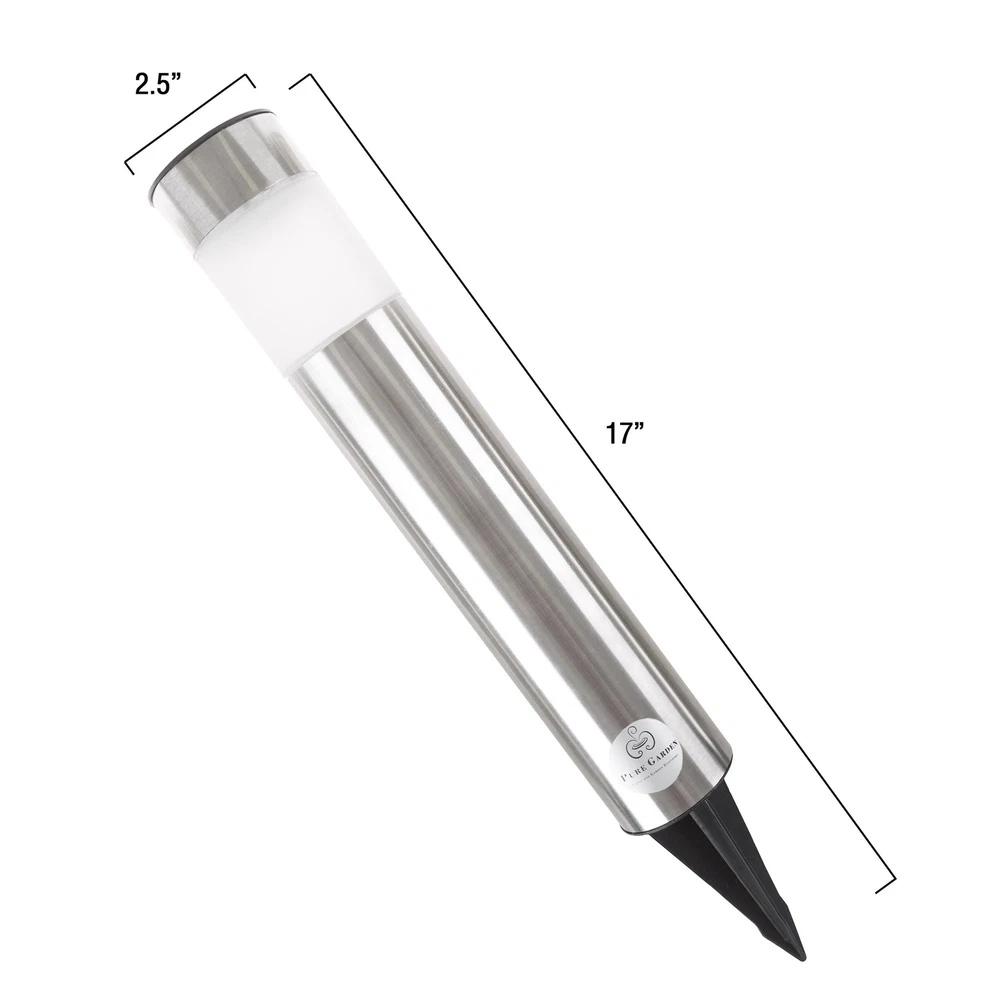 The Solar Outdoor LED Light and Battery Operated Path Light by gives off a soft solar light while providing delightful accent lighting making it a wonderful addition to any yard or landscaping. The solar light soaks up the sun’s energy during the day and turns on at dusk. The elegant designed 4 pack path lights are made from durable stainless Steel, long-lasting and weather resistant that will be adored for years to come! EASY INSTALLATION – The efficient, solar powered light automatically turns on at dusk and lasts up to 6 hours for hassle free illumination. With wireless set up and operation, quickly install your pathway lights simply by pushing them into the ground where you would like them placed and turn them on! ENERGY SAVING LIGHTING - The energy efficient solar panel absorb sun light during the day to recharge the 1PC AA Ni-Cd 600mAh batteries. After a day out in the sun, these lights will illuminate your walkways throughout the night! WEATHER RESISTANT – These weather resistant lights are safe to keep outdoors beyond just the warm summer nights. Designed to withstand rain, snow, frost or sleet, these solar lights will withstand all of nature’s elements and will look great lining your home’s driveway, garden paths, decks, patios, walkways and more! PRODUCT DETAILS: Assembled Dimensions: 17 inches (H) x 2.5 inches (W). Lumen: 1.2 Material: Made of sturdy stainless steel post and plastic frosted lens. Includes lanterns, 4 posts and 4 plastic spikes. SATISFACTION GUARANTEED – is committed to providing consumers with the absolute best price and value on our entire line of products. NOTE: This is an exclusive product of and ONLY The Solar Outdoor LED Light and Battery Operated Path Light by are GUARANTEED to be genuine