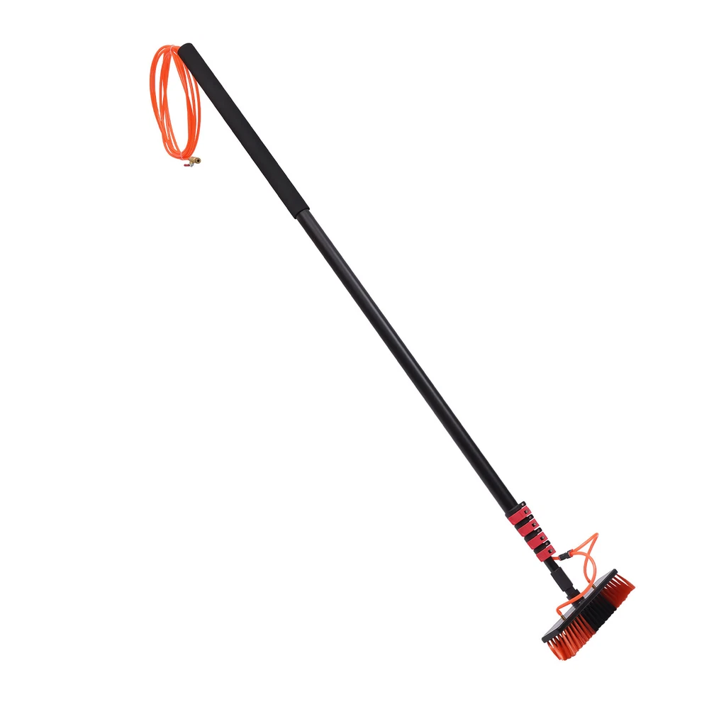 Description This water fed brush is equipped with a telescopic pole and a 27.88ft long water hose, offering great convenience in cleaning space. The PP bristles provide good cleaning power without scratching the cleaning surface, making it ideal for cleaning photovoltaic panels, cars and windows. The hose can also be installed in the telescopic pole, making it more aesthetically pleasing and convenient. Key Features Safety Protection: This professional cleaning tool for high surfaces lets you say goodbye to rickety ladders or dangerous roof climbs! Quality Materials: The sturdy aluminum alloy pole can support up to 145lbs and will not bend even at maximum length. It also has good anti-rust ability for long-term water washing environment. Solar Panel Cleaning Brush & Pole Kit Window Cleaner Solar Panel Cleaning System Description This water fed brush is equipped with a telescopic pole and a 27.88ft long water hose, offering great convenience in cleaning space. The PP bristles provide good cleaning power without scratching the cleaning surface, making it ideal for cleaning photovoltaic panels, cars and windows. The hose can also be installed in the telescopic pole, making it more aesthetically pleasing and convenient. Key Features Safety Protection: This professional cleaning tool for high surfaces lets you say goodbye to rickety ladders or dangerous roof climbs! Quality Materials: The sturdy aluminum alloy pole can support up to 145lbs and will not bend even at maximum length. It also has good anti-rust ability for long-term water washing environment. The PP bristles effectively remove dirt from the gap and surfaces without leaving scratches on the surface. Good Flexibility: The brush head can be rotated 210° through the flexible angle adjustment joint, while the adjustable clamps allow the telescopic pole to be adjusted between 5.77ft and 24ft for cleaning at a wide range of distances and angles. 3-in-1 Design: 2 water spouts, an enlarged brush head and solid squeegee allow large areas to be rinsed, brushed and scraped dry in one go without leaving streaks or stains, greatly improving efficiency. Comfortable User Experience: The lightweight aluminium alloy telescopic pole with foam handle is comfortable and effortless to hold, making it easy for the elderly and women to use. Photovoltaic Panel Cleaning Assistant: Stains and dust on the surface of photovoltaic panels will reduce electricity production by affecting light transmission. A comparison shows that PV panels cleaned with the water-through brush produce 14.7 KWh/day more electricity and have a longer service life. Easy to Install: The brass connector and tap quick connector make it easy to quickly connect the hose to a standard hose or outdoor tap. The installation instructions included in the package will also help you to quickly complete the installation. Customer Service : We aim to provide quality products and services. If you have any problems, please feel free to contact us. We will reply and solve the problem for you as soon as possible. Details Brass Connector Switch: The brass connector switch on the end of the hose allows you to control the on/off and volume of water flow. Practical Hose: The tough EVA hose is resistant to pressure, ageing and twisting for long periods of use. 27.88 lengths minimise water supply restrictions and provide a wider working space. Application It can be used to clean windows, solar panels, glass walls, roofs, cars, ceilings, signs, trucks, vans, motorbikes, boats, caravans and other hard-to-reach places. Specifications Pole Material: Aluminum Alloy Hose Material: EVA Connector Material: Brass Locking Method: Twist Lock Brass Connector Diameter: 1/4in(0.6 cm) Squeegee Material: Stainless Steel and PP Color: Red and Black Specification: 4-section Telescopic Pole Brush Head Length: 30cm/11.81in Loading Capacity: 65kg/145lbs Hose Length: 8.5m/27.88ft Adjustable Pole Length: 1.76-7.3m/5.77-24ft Adjustable Angle: 210° Packing Size: 181*16*10cm/71.25*6.29*3.93in Gross Weight: 4.4kg/9.7lbs Net Weight: 3.9kg/8.59lbs Package Included 1 x Telescopic Pole 1 x Brush Head 1 x 8.5m Water Supply Hose with Switch 3 x Short Hoses 1 x Brass Connector 1 x Tap Quick Connector 1 x Brass Hose Connector 1 x Angle Adjustment Joint 1 x Squeegee 1 x Squeegee Handle 1 x Allen Key 1 x English Installation Manual Notes Please allow the slight color difference caused by the shooting light and 1-3cm error due to manual measurement, and make sure you do not mind before you order. Payment Delivery details Terms of sales About us Contact us Payment We accept ebay payment 。 Fees such as import duties, taxes are not included in the item price or shipping costs. These charges are the buyer's responsibility. Delivery details Shipping: 2-9 working days to: USA Terms of sales We maintain high standards of excellence and strive for hundred percent customer satisfaction. Feedback is very important to us. We hope that you contact us immediately before you give neutral or negative feedback, so that we can address your concerns. It is impossible to address issues if we do not know about them! About us Your satis faction is our ultimate goal. We work hard to earn your trust and future business. Our certified technicians have tested each item before shipping. The unit comes with 1 year limited warranty on all manufacturing defects. a) If you receive a defective item, you may return it or ask for a discount. Please contact us within 14 days after you receive the package. b) What you returned must be intact and in its original packaging as re? u. Customer is responsible for shipping costs of the returned item. c) We will cover the cost of shipping back t with the shipping rate indicated in the registration page. We will send you a new unit or refund the full payment you paid. Thank you. Contact us Business Hour Business Hour: Monday To Friday: 8:30 AM to 5:00 PM (Beijing China time) Due to time zones, our reply to your questions may not b