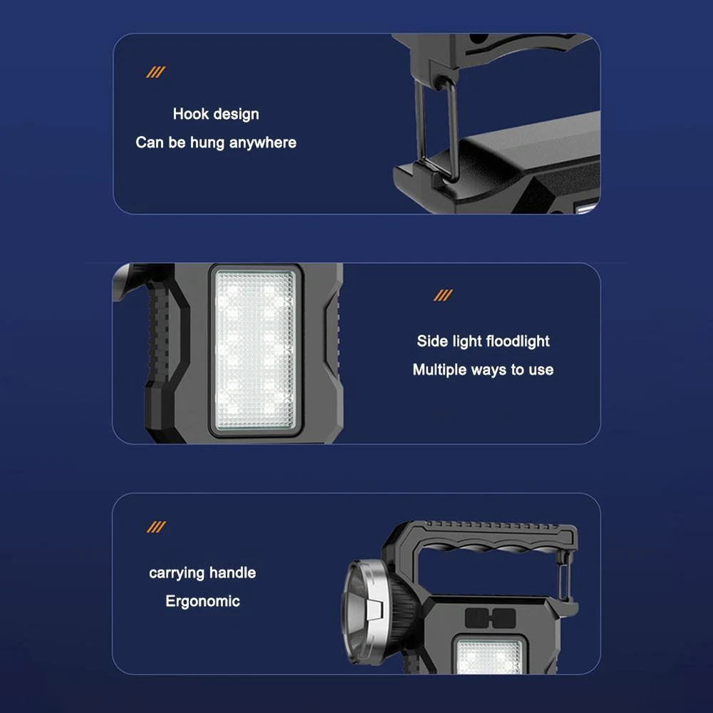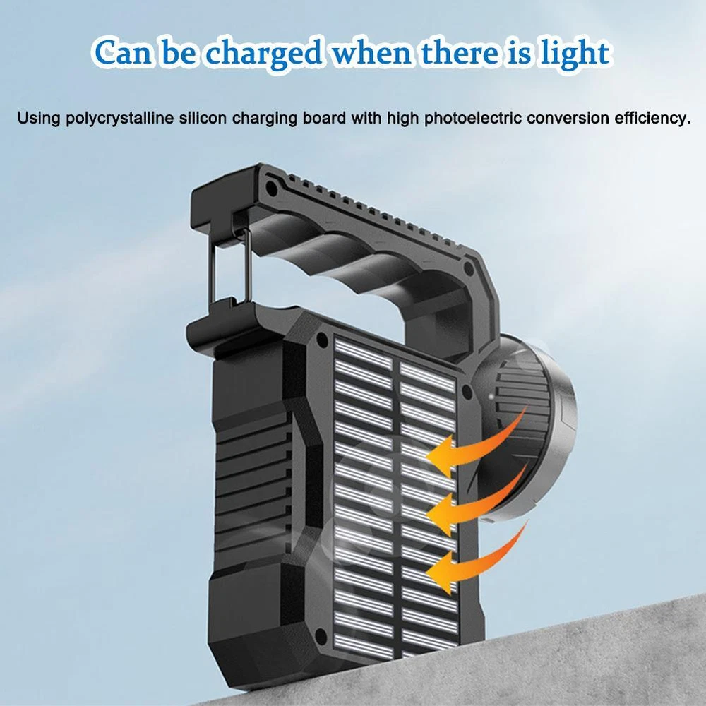 Solar Portable Handle Flashlight USB Rechargeable Torch LED Spotlight COB D9H7