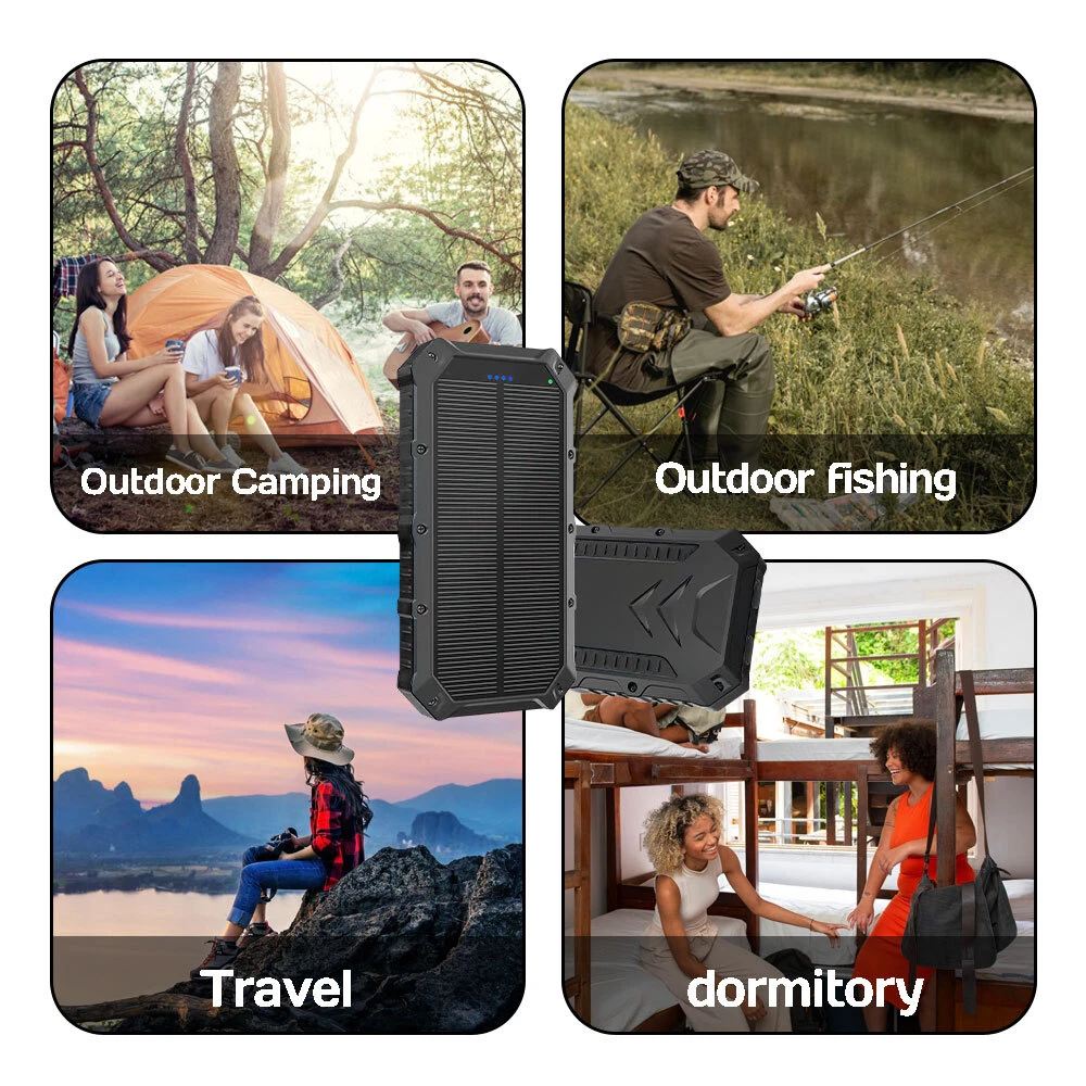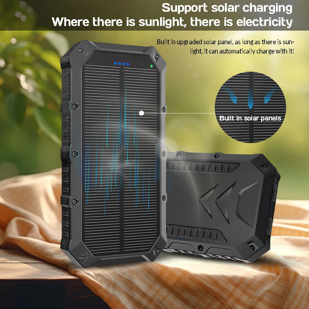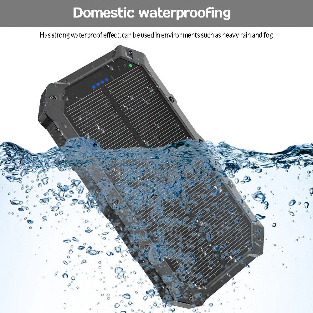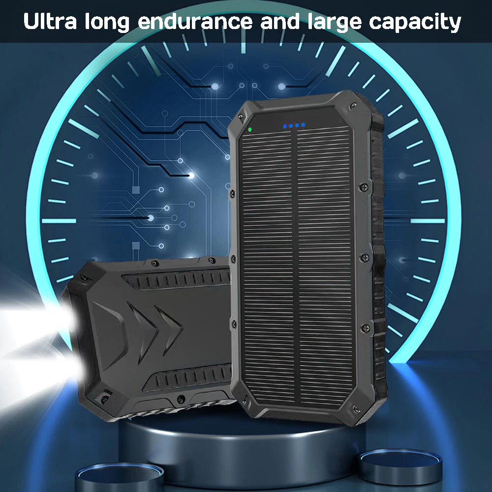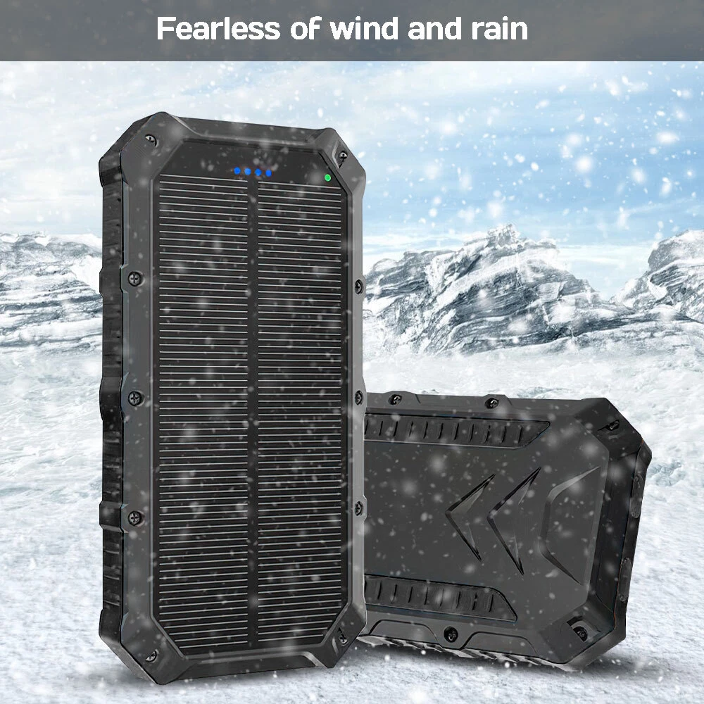 Features: [ S uper capacity ] : The solar charger has a large battery capacity of 900000mAh, and this solar charging treasure can charge your device many times. Super battery life allows you to get rid of the anxiety and worry about the exhaustion of equipment power anytime and anywhere. [ Power supply for three devices at a time ] : This solar cell phone charger is also equipped with four ports (Micro USB input, USB A&B output, USB C input/output), which provides 5V/3A high-speed charging to save time. It supports charging three devices at the same time. It can support QC3.0 fast charging protocol. Keep all devices active. Sharing with family and friends is perfect. [ Two different charging methods ] : The 900000mAh external battery charger can be charged through the adapter and solar energy, so as to avoid the trouble of power failure. It is strongly recommended to charge through the wall socket in daily life, and use the solar charging function as an emergency backup solution. The USB cable in the package is only used to charge the solar charger. Charging other devices is not recommended, because incompatibility may reduce the charging efficiency. [ Rugged outdoor design ] : The charging treasure is made of sturdy professional ABS materials. This solar battery pack (IP65) is waterproof/shockproof/dustproof and can withstand harsh outdoor environment. It is equipped with double super bright LED lights, which is an essential tool for outdoor activities and family emergencies. The charging life is over 1600+ times, which is very reliable and durable. Parameters: Shell material: PVC Color: Black Battery type: Lithium Polymer Battery Battery capacity: 900000mAh Function: Support 15w Fast Charge Package Contains: 1 x Solar Power Bank 1 x Charging Cable