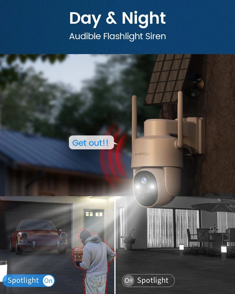 Solar Security Cameras Wireless Outdoor,360° View Battery Powered with Spotli...