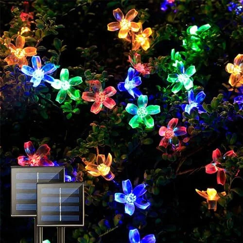 Solar String Flower Lights Outdoor 2Pack 200 LED 80Ft Multi-Color Fairy 2 Pack