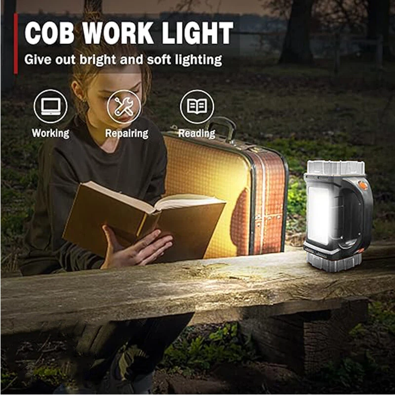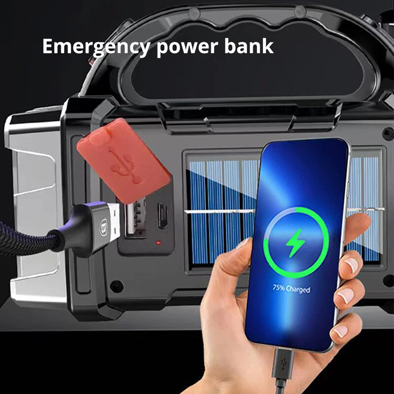 Solar Tent Light Rechargeable LED Flashlight Camping Power Torch Lantern Lamp