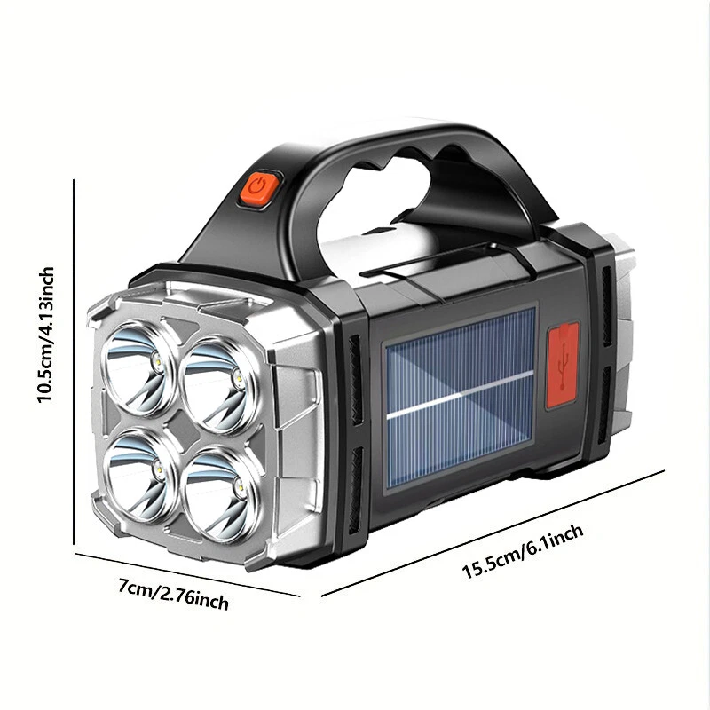 Item Width: 2.8 in Features: Handheld, Waterproof Charging Method: Solar Charging + Micro USB Charging Cable gtin13: Does not apply MPN: Does not apply Charging Time: 2-3hrs Voltage: 4.5v Waterproof Grade: IP44 Operating Range: 25 m Item Height: 4.1 in Working Time: 5-8hrs Brand: Unbranded Color: Silver Use Light Sources: 4LED+6COB Material: ABS Item Length: 6.1 in Type: Flashlight Lighting Technology: LED Power Source: USB UPC: Does not apply Item Weight: 0.47 lb
