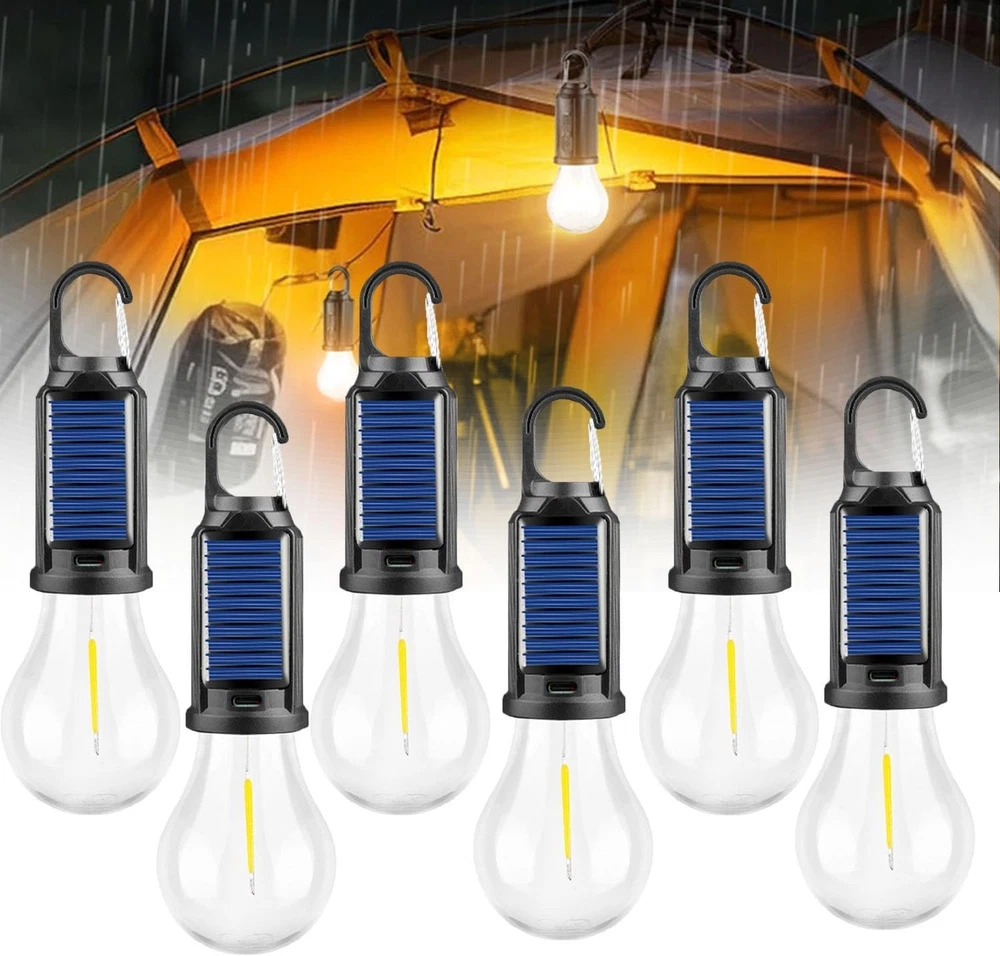 Solar Tent Lights LED Lantern,Backpack Hanging Lamp with Clip Hook,USB recharge Product List: 2/4/6/8*Solar Light 2/4/6/8*USB Cable 1. Powerful Solar Charging & Dual Power Modes Enjoy ultimate power freedom with our upgraded solar-powered lights. Just place them under the sun for efficient charging. No more worrying about dead batteries during adventures! For a quicker boost, use the included TYPE-C cable. This makes them a truly reliable outdoor camping essential , rain or shine. 2. Exceptionally Long-Lasting & 3 Brightness Modes Experience unparalleled runtime with our energy-efficient LED technology. On a full charge, these lights provide extended illumination throughout your night. Choose from 3 practical modes (Low/Medium/High) to perfectly match any activity—from creating ambient mood lighting to lighting up your entire campsite for tasks or safety. 3. Rugged, Waterproof & Built for Outdoor Adventures Designed to endure the elements, this camping light is constructed from high-impact ABS material and features a waterproof rating (IPX4 or higher, please confirm your product's specific rating). It resists splashes, dust, and accidental drops, ensuring it stands up to the rigors of hiking, camping, fishing, and any outdoor challenge. 4. Ultra-Portable & Versatile for Any Occasion Compact, lightweight, and incredibly versatile. Hang it in your tent, use it as a lantern on the picnic table, or take it on nighttime walks. Its gentle light is also perfect for backyard parties, patios, or as a reliable emergency light during power outages at home. It’s the all-in-one lighting solution for both your outdoor escapades and indoor needs. 5. Your Satisfaction is Our Priority We are confident in the quality and durability of our solar camping lights. Your peace of mind is our top concern. If you have any questions or concerns, our customer support team is here to ensure you have a perfect experience with your new outdoor gear.