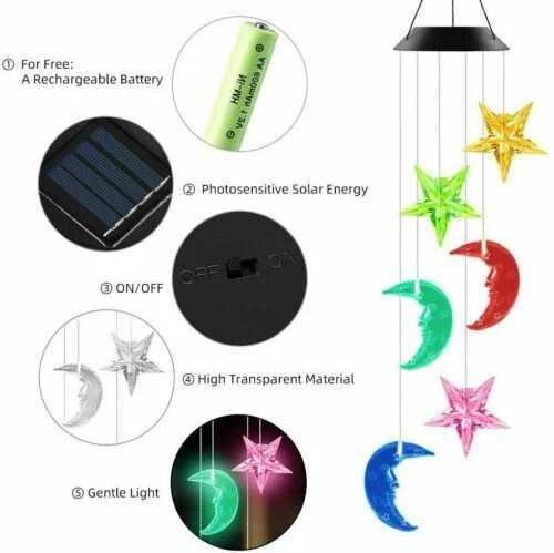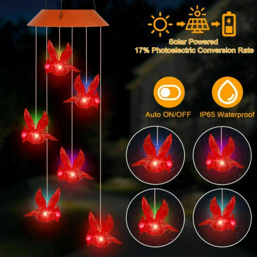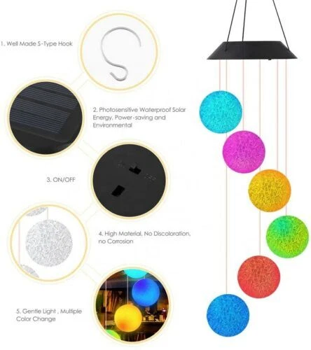 Solar Wind Chime Color Changing LED Light Outdoor Hang Crystal Ball Decoration Package Include : 1x Solar LED Wind Chime Light Available in 5 Styles Style 1 - Color: Cardinal Red Bird - Material: Plastic, Acrylonitrile Butadiene Styrene - Size: 2.5" x 3.5" ( Bird size) 21.5" (length) x 5.5" (width) Style 2 - Color: Crystal Ball - Material: Plastic, Crystal - Size: 2.5" x 2.5" ( Ball size) 21" (length) x 5.1" (width) Style 3 - Color: Angel Wind - Material: Plastic, Acrylonitrile Butadiene Styrene - Size: 4.1" x 3.1" ( Angel size) 19.3" (length) x 4.9" (width) Style 4 - Color: Moon & Star - Material: Plastic, Acrylonitrile Butadiene Styrene - Size: 2.9" x 2.7" (Moon size) 2.5" x 2.5" (Star size) 31" (length) x 4.9" (width) Style 5 - Color: Pineapple - Material: Acrylonitrile Butadiene Styrene - Size: 8.7" (length) x 5.9" (width) Specifications: Description: Solar Charging -The solar wind chime light uses the newest of solar charging, which is energy-saving. The improved high-power solar panel can quickly absorb energy and make charging faster. It can be used for 10 hours at night when fully charged during the day. IP65 Waterproof -The outdoor solar wind chime light has IP65 rainproof and moisture-proof grade and uses high-quality and durable ABS material, which will not fade or deform. You can safely hang it in courtyards, gardens, trees, lawns, and other outdoor places. Multicolor LED Lamp Beads - Each led solar wind chime has built-in 6 colors of LED lamp beads, which can be illuminated at night to produce a surreal effect. East To Use -Humanized solar power design, no wiring or external power supply required. The switch is set to "ON", the solar light will automatically light up at dusk. Lightweight and easy to hang. The hook can be easily hung on trees, patios, gardens, and other outdoor places. Holiday Decor -These solar wind chime lights add unique hanging decorations to your outdoor and indoor space and increase the festive atmosphere. It is the best decorations choice for Christmas, birthdays, friend gatherings, and home party. Note: Please allow slight dimension difference due to different manual measurement. Due to the shooting angle and the display, the goods may have a color difference from the picture. Thank you for your kindly understanding. Guarantee • Fast & Free Shipping on ALL Orders We believe that you should enjoy the benefit of FREE Shipping on all of your orders within the all Continental States. That's why no matter what you buy, we will ship it for FREE, so the price you see is exactly what you pay. No hidden fees or shipping charges. • Most Items Delivered in 2-6 Business Days When you're buying from us, you deserve fast and reliable service. That's why we have a "Same Business Day" processing in place and wide range of shipping options to choose from in order to deliver your package as soon as possible. *2-6 business days’ time-frame is NOT GUARANTEED and was statistically calculated based on all previous orders. • ALL Orders Placed On Business Days Before 4 PM EST Will Be Shipped Same Day Why wait a day or more for your order to ship? All orders placed before 4 pm EST, Monday to Friday, ship the SAME day. Orders placed on Friday after 4 pm EST, Saturday and Sunday will be shipped the next Monday (if business day). We are closed on all Federal Holidays. • 30 Days Money Back Guaranteed! We will gladly accept your return within 30 days of the original purchase. Please, see below for our full Returns Policy. Shipping • Most orders arrive at your door in 2-6 Business Days FOR FREE! • Place your order before 4 pm EST and it will be shipped the same day, Monday to Friday, excluding major holidays. • We will ship your order to your PayPal Verified address provided. • Please verify your address and make sure that it is your current address before making your payment. Any address change requests after your payment CANNOT be guaranteed. • We do not include invoice with our shipments. Feedback • Positive feedback is automatically done once your order is shipped. • We appreciate all our customers to post a Positive Feedback and "Five-Star" scores. • If for any reason you are not satisfied with your purchase. Please contact us via eBay Message and We will do our best to satisfy you! Payment & Cancellation • Instant PayPal payment is required. • We also accepts Visa, MasterCard, Discover, and American Express through PayPal guest checkout. • Sales tax is charged by eBay based on your shipping address. • To uphold a shipping speed, your order will be processed almost immediately. If you change your mind after your payment is confirmed, we will do our best to stop the order, however, we CANNOT guarantee the cancellation. Return • We will gladly accept your return within 30-Days of the original purchase. • Our return process is simple and fast: 1. We will pay for the return shipping label if you received a broken/defective item(s) or the item(s) doesn't match our description. As soon as we receive the item(s) back we will process a refund for the item(s)which was/were returned. 2. You will be required to pay for the return shipping label if you changed your mind or no longer need the item(s). As soon as we receive the item(s) back we will process a refund for the item(s) which was/were returned. • If we'll receive a package back because of the incorrect address, the refund will be processed excluding our shipping cost. Contact Us • Send us a message on eBay and we will answer within 24h on business days.