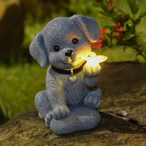 Return Policy Fast Delivery Trusted seller Solar Dog Statue with Butterfly – Outdoor Garden Decor for Home, Patio, Yard, Balcony, or Porch – Birthday for Women, Mom, Grandma – Housewarming Surprise Product Description Charming Dog Statue with Butterfly Solar Light: Handcrafted from eco-friendly resin, this delightful dog statue features intricate detailing and an adorable expression. The solar-powered butterfly light on its paw adds a magical glow to your garden or yard, enhancing its beauty at night. Perfect Outdoor Decoration: Ideal for any garden, patio, lawn, or balcony, this dog statue with a butterfly-shaped solar light symbolizes loyalty and freedom. Standing 8 inches tall, it’s the perfect size to complement your outdoor space and make a statement. Great Gift for Dog Lovers & Home Decor Enthusiasts: A thoughtful gift for dog lovers, art collectors, or anyone who enjoys unique outdoor decor. Perfect for Mother’s Day, Father’s Day, birthdays, housewarmings, Christmas, and more. Bring joy and beauty to your loved ones’ homes. Heartfelt Dog Memorial: This touching dog memorial statue offers comfort and peace to those grieving the loss of a pet. Place it in your garden or on your desk as a gentle reminder of your loyal companion, bringing warmth and healing to your heart. Energy-Efficient & Weatherproof: The butterfly-shaped solar light charges during the day (6-8 hours) and provides up to 8-10 hours of soft illumination at night. Fully waterproof and built to withstand outdoor weather conditions, no battery replacement is needed—just ensure the switch is set to “ON.” Shipping Returns Payment Shipping Shipping is FREE to all addresses other than APO/PO boxes in the lower 48 states. All our stock ships from US-based warehouses. Shipped via USPS or UPS (depending on location and package weight) Unless stated otherwise, all orders will ship within 24-72 hours of your payment being processed. Check our feedback to see the great reviews of FAST shipping we offer. Returns Seller does not accept returns Payment We currently accept payment via eBay managed payments only. Once payment is cleared, we will dispatch your shipment within 1-3 business days. Please refer to the "Shipping" tab for more information regarding shipping speed to your destination.