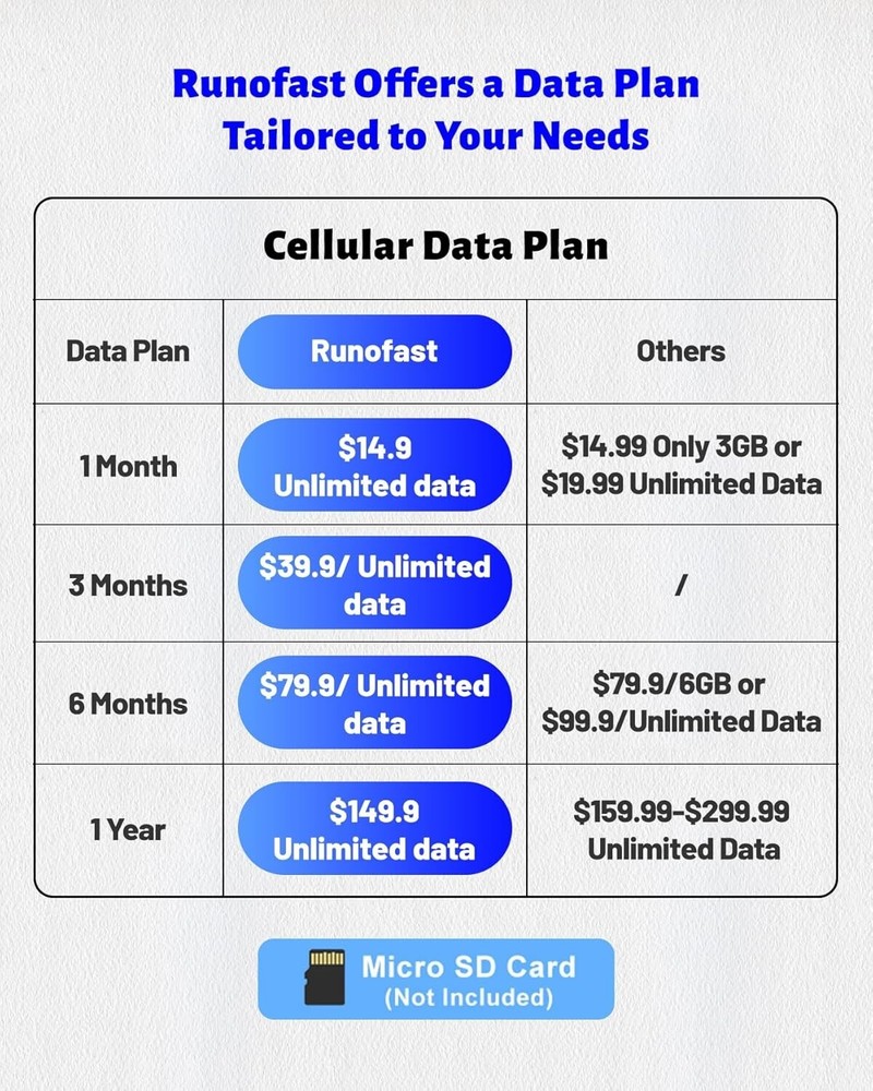 4G LTE Cellular Security Camera, Solar-Powered No WiFi Needed Wireless Outdoor Security Camera with PIR Motion Sensor, 355° Live View, 2K HD Night Vision, Remote Access, 2-Way Audio, Built-in SIM Card No WiFi or Power Needed for Constant Monitoring: The 4G LTE cellular security camera, suitable for use in the US, Mexico, and Canada, is solar - powered with a built - in 10400 mAh battery, requiring no internet connection, making it ideal for remote locations like farms, graveyards, and construction sites to ensure constant surveillance Built-in SIM Card with Flexible Data Plans: Comes with 300MB of prepaid data for camera connectivity. The SIM data plan can be renewed in-application at $14.9 per month, $79.9 for 6 months, or $149.9 annually (only with the included SIM card). Enjoy unlimited data viewing without worrying about data limits, and it supports TF cards (up to 128 GB, not included) and optional cloud storage service for secure event uploads, accessible anytime via the iCam365 app. Remote Control and 2K Live Viewing: This outdoor cellular security camera offers 2K resolution, 355° pan, and 100° tilt, allowing you to control it remotely via the ICAM365 app for clear live video anytime, ensuring the safety of your property Smart Tracking, PIR Detection, and Two-Way Audio: High-sensitivity PIR motion sensors reduce false alarms, sending timely alerts when motion is detected and saving video locally. The built-in microphone and speaker allow for real-time two-way audio, making it easy to communicate with visitors or deter intruders All-Weather Protection for Any Conditions: Whether it's a sunny day or a stormy night, the IP66 waterproof certification ensures the camera operates reliably in any weather. Enjoy peace of mind knowing your property is secure, regardless of the conditions outside