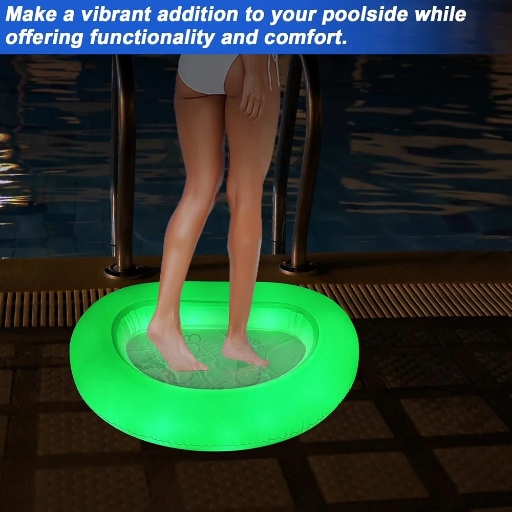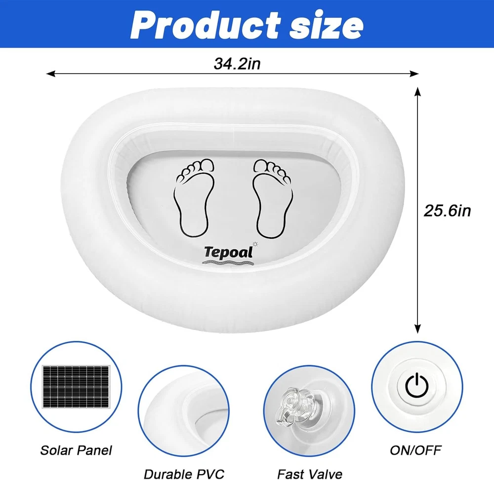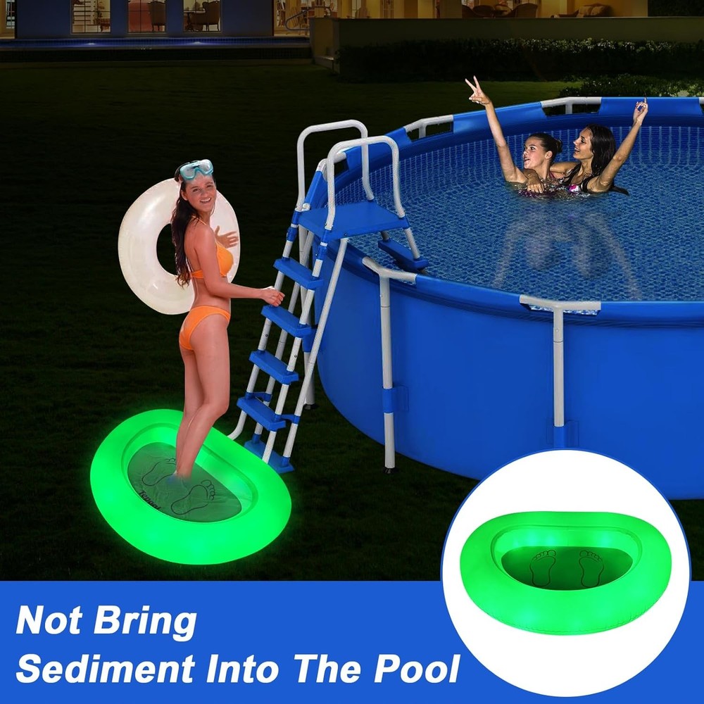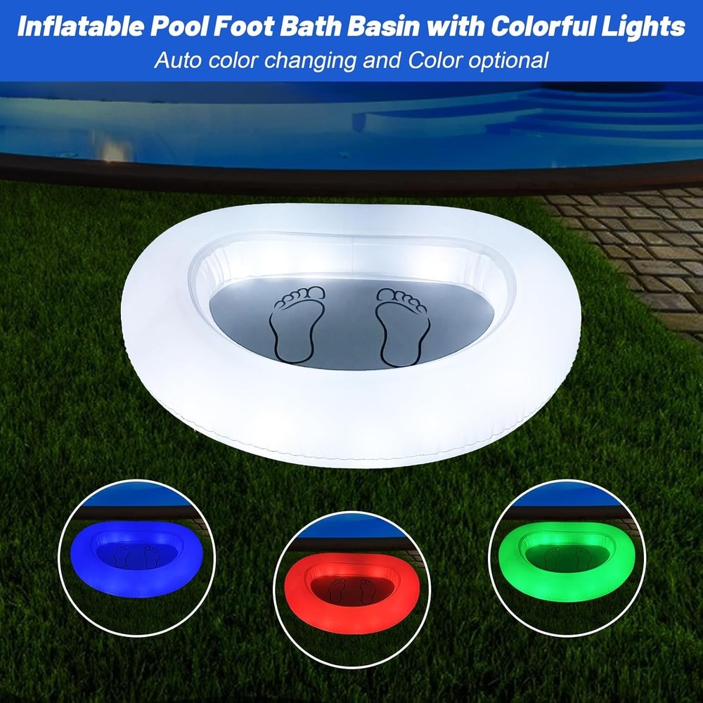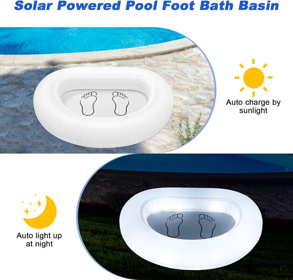 Inflatable Pool Foot Bath Basin with Colorful Lights, Solar Powered Pool Foot Wash Tub for Pool Entry Ladder, Portable Pool Foot Bath Tray for Aboveground & Inground Swimming Pool Clean Feet LuxeFusion Product Description Features 【Multi-Purpose Use】 -- Our pool foot rinse is used for rinsing your feet when entering swimming pools, home inflatable pools, hot springs or spa foot baths to make your feet cleaner and keep your pool water clearer and pollution-free, and you can take it with you when traveling or camping outdoors, so that your family or friends can enjoy bathing and playing with it. Product Details Product Dimensions: 34.2 x 25.6 x 6.3 inches Item Weight: 14.1 ounces Department: Unisex-Adult, Unisex-Baby, Unisex-Youth Manufacturer: Shenzhenshi huakelongmaoyiyouxiangongsi Country of Origin: China Item model number: XJB-25 Batteries: 1 AA batteries required. (included) Free Shipping All orders ship free and fast to your doorstep. Easy Returns Satisfaction guaranteed. 30-day returns, no questions asked. 24/7 Support Contact us anytime; we’re here to help, day or night. Brought to you by LuxeFusion – Quality you can trust.