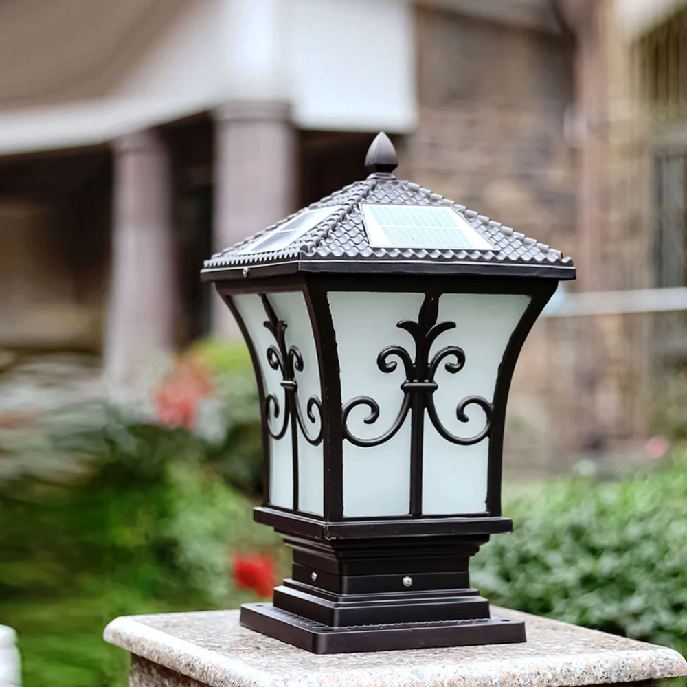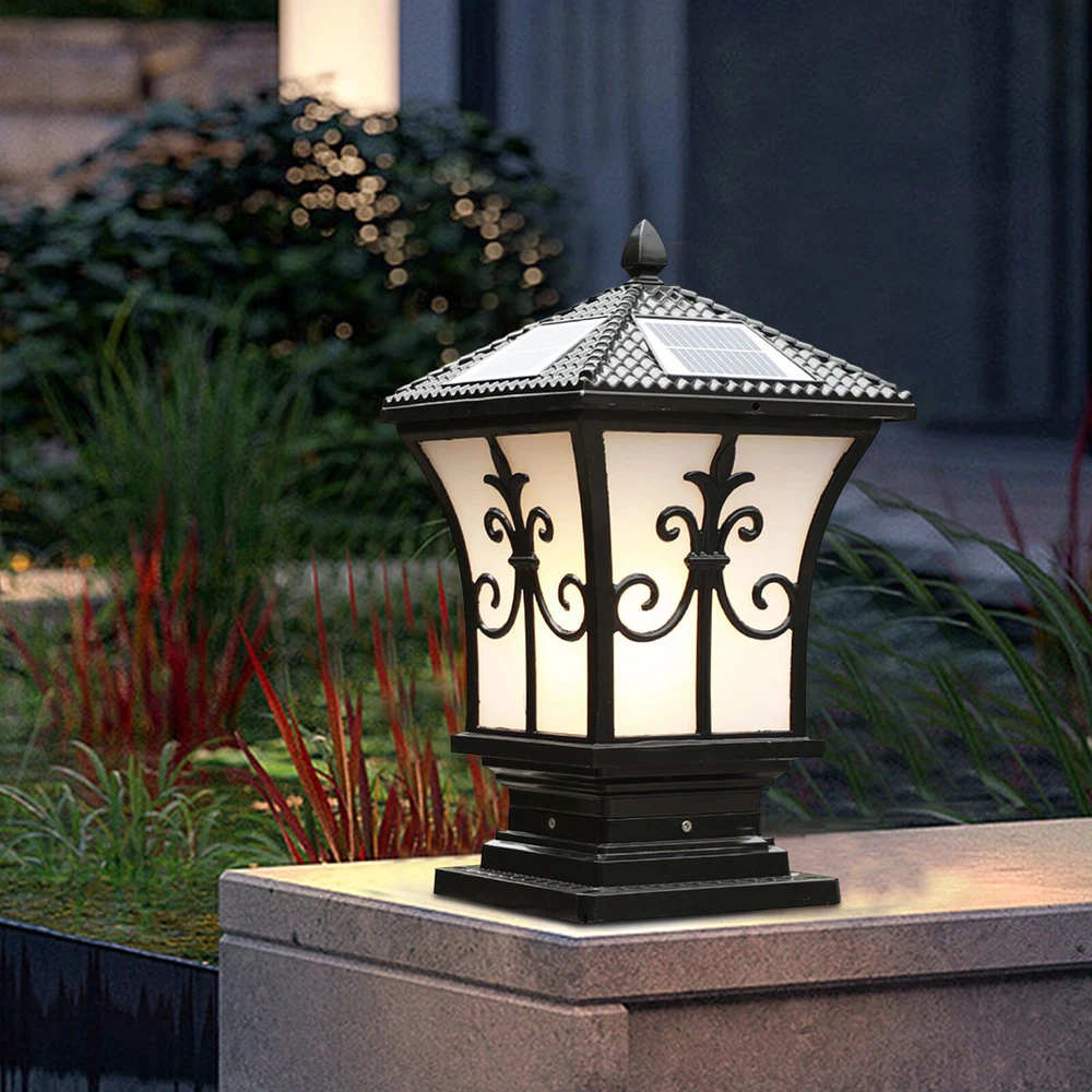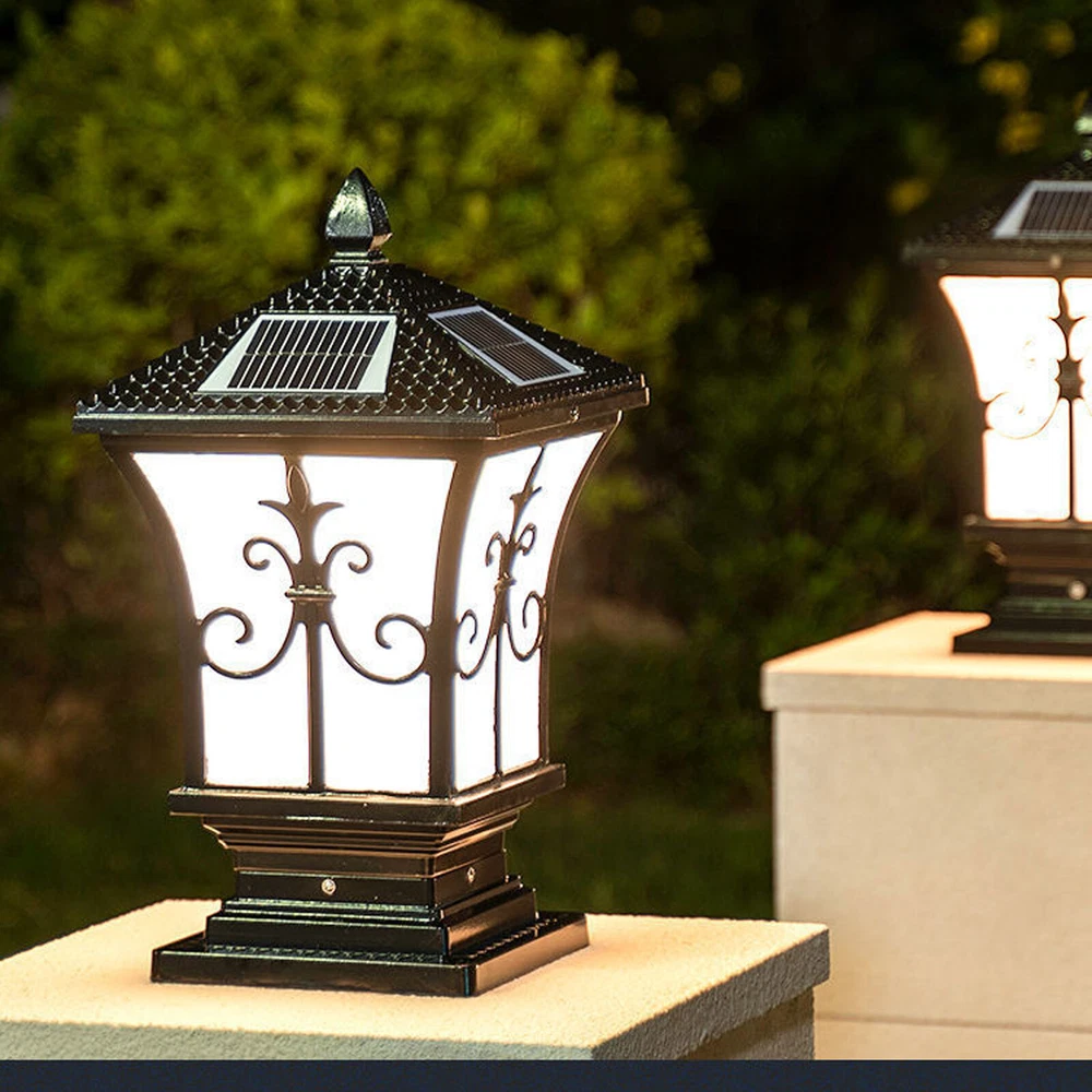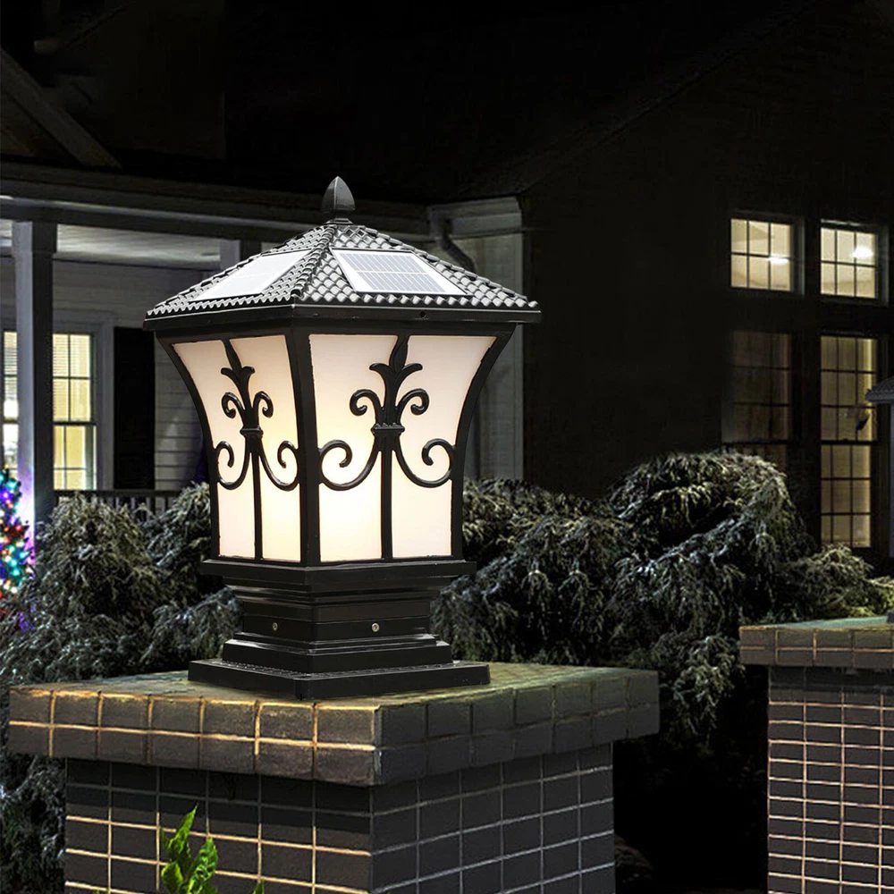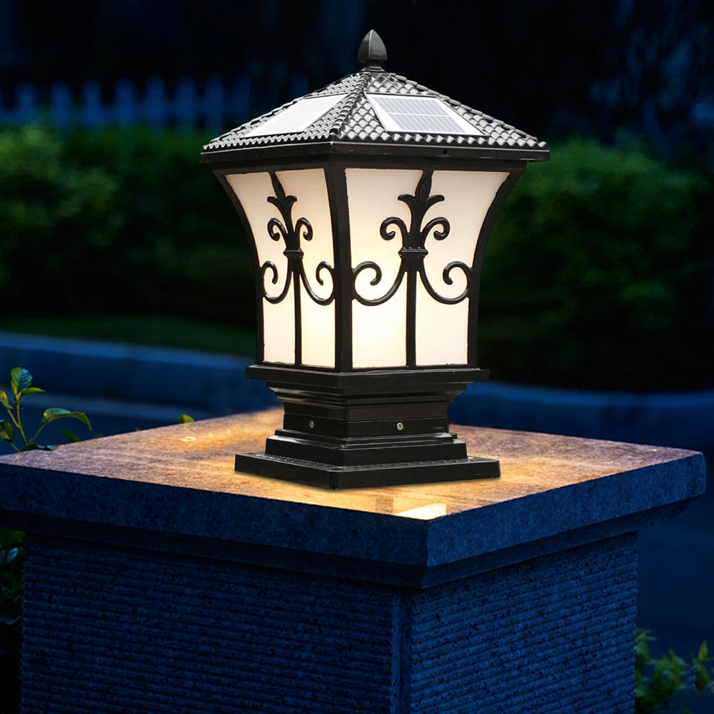 Solar-Powered Outdoor LED Post Light for Garden Fence Yard in Black