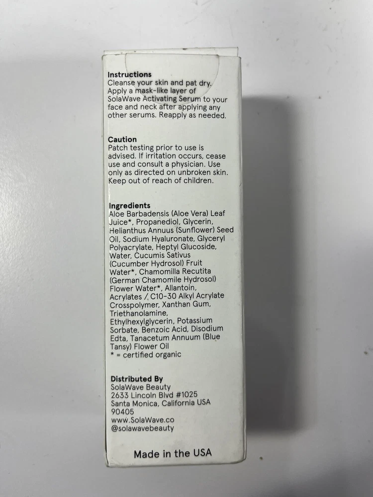 Active Ingredients: Hyaluronic Acid, Iconic Mineral Complex, Nonapeptide-1 Body Area: Face, Neck UPC: 810137610160 Main Purpose: Age-Defying, Early Signs of Aging, Fatigue, Firming, Hydration, Nourishing, Radiance, Regenerating, Restorative, Revitalizing, Wrinkles Type: Serum Volume: 1 fl oz Brand: Solawave Skin Type: All Skin Types Country/Region of Manufacture: United States Formulation: Serum Period After Opening (PAO): 24M Department: Unisex Size: Regular Features: Alcohol-Free, Ammonia-Free, Animal Cruelty-Free, Contains Hyaluronic Acid, Formaldehyde-Free, Paraben-Free, Silicone-Free, Sulfate-Free, Vegan gtin13: 810137610160