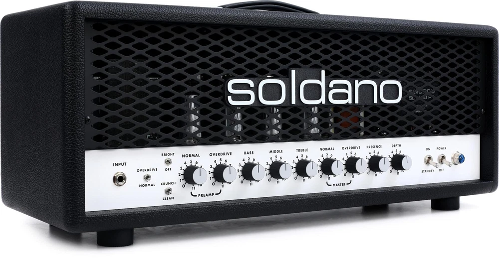 Soldano’s Legendary Fire-breather The Soldano Super Lead Overdrive isn’t just another high-gain tube amplifier head — it’s so much more than that. This awe-inspiring fire-breather’s cascading-gain preamp design delivers a thick, juicy sizzle that lends itself to everything from whiskey-soaked electric blues to red-hot jazz fusion to tooth-rattling metal. And then there’s the SLO-100’s dynamic sensitivity, which hangs right in there with the best of its boutique-voiced brethren. This 100-watt, 2-channel amp head includes simple, yet eminently effective tone-shaping, along with independent preamp gain and master volume controls for achieving harmonically saturated tones at manageable levels. You also get a tube-buffered effects loop for your pedals, while a variable slave output enables effortless DI-ing. Beyond that, a rotary impedance selector allows you to pair the SLO-100 with a myriad of speaker cabinets. Soldano’s Super Lead Overdrive is built from top-shelf, military-grade components for the ultimate in durability. Countless world-class guitarists Sweetwater is an Authorized Soldano Dealer Genuine Open Box Item Sweetwater's 2-year warranty Soldano SLO-100 Super Lead Overdrive 100-watt Tube Head - Metal Grille 100-watt, 2-channel Guitar Tube Amplifier Head with Bright and Clean/Crunch Switches, Independent Preamp Gain/Master Volume Controls, 3-band EQ with Presence/Depth Controls, Tube-buffered Effects Loop, Slave Output, and 4/8/16-ohm Selectable Impedance - Metal Grille Soldano’s Legendary Fire-breather The Soldano Super Lead Overdrive isn’t just another high-gain tube amplifier head — it’s so much more than that. This awe-inspiring fire-breather’s cascading-gain preamp design delivers a thick, juicy sizzle that lends itself to everything from whiskey-soaked electric blues to red-hot jazz fusion to tooth-rattling metal. And then there’s the SLO-100’s dynamic sensitivity, which hangs right in there with the best of its boutique-voiced brethren. This 100-watt, 2-channel amp head includes simple, yet eminently effective tone-shaping, along with independent preamp gain and master volume controls for achieving harmonically saturated tones at manageable levels. You also get a tube-buffered effects loop for your pedals, while a variable slave output enables effortless DI-ing. Beyond that, a rotary impedance selector allows you to pair the SLO-100 with a myriad of speaker cabinets. Soldano’s Super Lead Overdrive is built from top-shelf, military-grade components for the ultimate in durability. Countless world-class guitarists swear by this modern classic. Test drive an SLO-100 for yourself, and you’ll see why! Cascading-gain preamp design equals rich, harmonically saturated gain The Super Lead Overdrive family is renowned for its rich, harmonically saturated gain and super-responsive touch dynamics. It was everywhere in the late 1980s and early 1990s — Eddie Van Halen on For Unlawful Carnal Knowledge, Journeyman-era Eric Clapton, and just about everything Mark Knopfler has done since 1987 are but a few examples. In fact, a complete list of SLO-100 users reads like a who’s who of world-famous guitarists: Lou Reed, Vivian Campbell, George Lynch, Gary Moore, Joe Satriani, Steve Vai, and a number of guitarists here at Sweetwater — the list goes on and on. And how does the SLO-100R achieve this glorious sound? It all starts with four cascading stages of 12AX7-driven preamp gain. Your signal then travels through a tone stack derived from a modified American-style amp. Finally, 100 watts of 6L6-fueled power stand ready to pummel your cabinet into submission. If you’ve never experienced one of Soldano’s Super Lead Overdrive amplifiers, plug in — you’ll never look back! 2 footswitchable channels cover rock, metal, contemporary blues, and more No matter what kind of tone you’re trying to dial in — rock, metal, contemporary blues — the Soldano SLO-100 can achieve it. This tube amplifier head’s Normal channel yields crystalline cleans that can be honed to a razor’s edge with the channel’s Bright switch or drug through the dirt with its Crunch switch. The SLO-100’s Overdrive channel delivers a super-thick sound that’s framed by a scorching, high-octane sizzle. Back off the gain and you’ll experience an inspiring blues-tinged sound with unbelievable touch sensitivity. Crank up the gain and you’ll unleash absolute brutality. Both channels share Bass, Middle, Treble, Presence, and Depth controls that supply loads of tone-shaping power. And a footswitch is provided for effortless, noise-free switching between channels. Pro-level features make integration with the rest of your guitar rig a breeze The SLO-100 is jam-packed with pro-level features that make integrating it with the rest of your gear a breeze. Its tube-buffered effects loop enables you to use it with your favorite effects pedals. Its slave control is an adjustable low-level output taken from the amp’s output transformer that enables you to route your signal straight to a PA or recording rig. Pro tip: this isn’t a load box — make sure you have a speaker or dummy load plugged into the amp while you’re DI-ing! The SLO-100 also boasts a rotary Impedance selector switch that accommodates 4-, 8-, or 16-ohm speaker cabinets. Soldano SLO-100 Super Lead Overdrive Amp Head Features: 100W, 2-channel all-tube guitar amplifier head with cascading-gain preamp design Versatile tone lends itself equally well to rock, metal, and contemporary blues Dynamic sensitivity hangs right in there with low-gain, boutique-voiced amplifiers Normal channel yields crystalline cleans that can be honed with Bright and Crunch switches Overdrive channel delivers a super-thick sound that’s framed by a scorching, high-octane sizzle Independent preamp gain and master volume controls for achieving harmonically saturated tones at manageable levels Both channels share Bass, Middle, Treble, Presence, and Dept