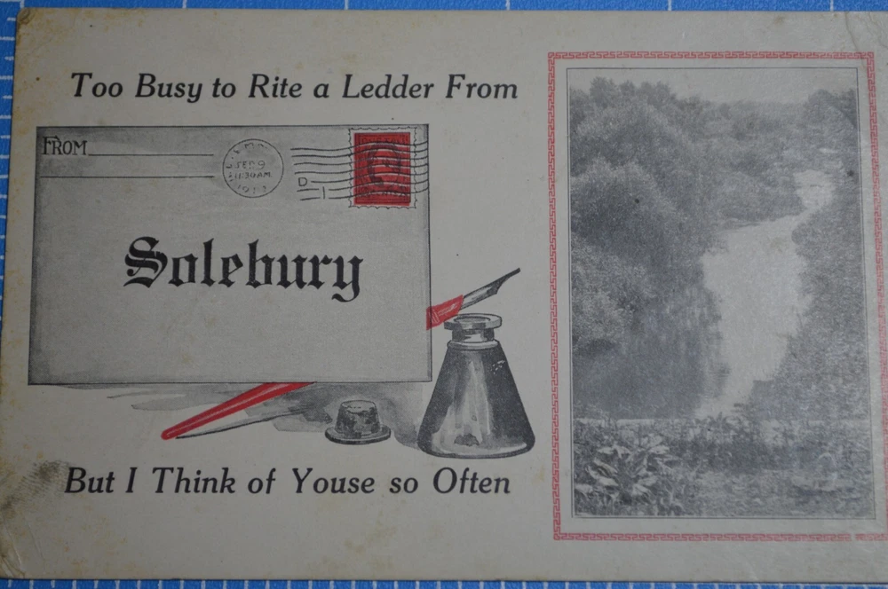 Solebury Bucks County PA Letter Writing Pen Inkwell Scenic 1913 Posted Postcard