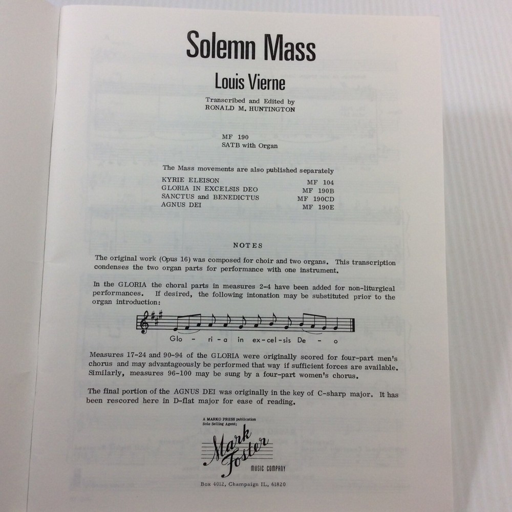 Solemn Mass SATB Choral Songbook by Louis Vierne 1963 VG Condition