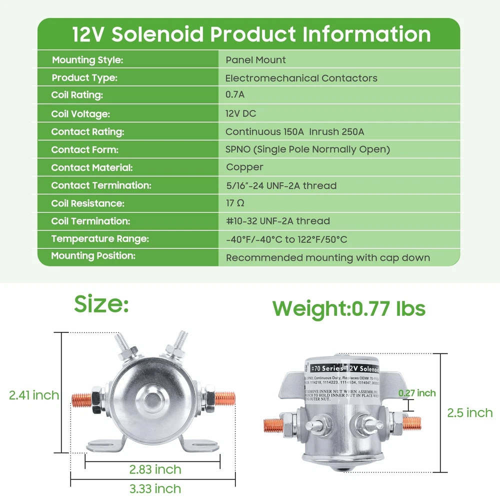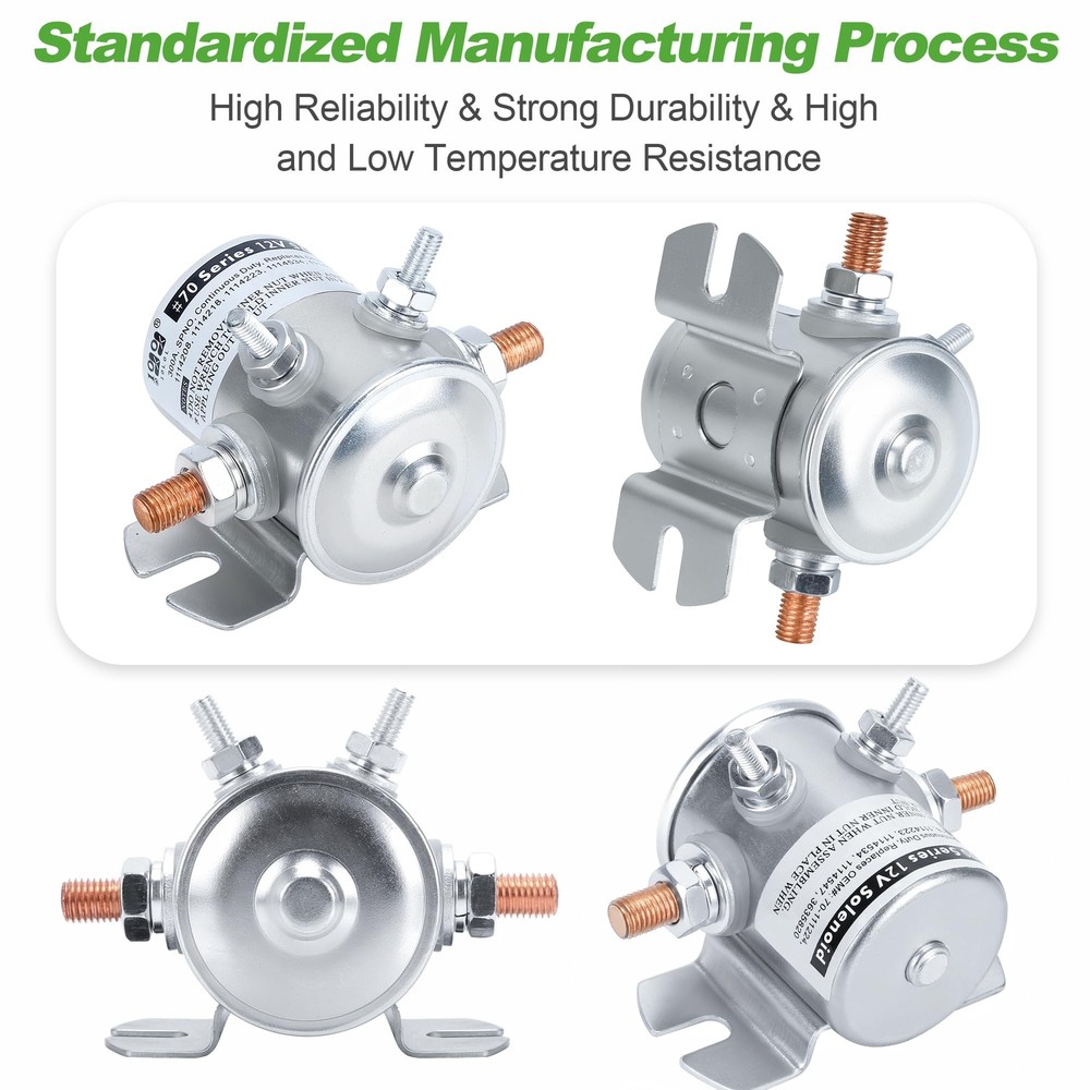 Solenoid Relay Fit for EZGO Marathon 1979-1994 & Cushman Gas Golf Cart Maximum Access 250A 12V, 4 Terminal with Copper Contacts, OEM# 16542G1 16542-G1 889673 70-111224 3635820 Wide Compatibility: Perfectly suited for EZGO Marathon 1979-1994 gas golf carts, Cushman vehicles, Columbia models, and Jacobsen. Also ideal for forklifts, tractors, boats, RVs, motors, winches. Premium Quality: Constructed with copper contacts, nickel-plated cover, and a standard flat mounting bracket, this solenoid relay is durable. High safety: Its 4 terminals with SPNO configuration and ground isolation provide stability and safety during operation. High Performance: The Golf Cart Solenoid Relay features a maximum transient current of 250A, with continuous working current recommended below 150A. Easy Replacement: Replace OEM part numbers# 16542-G1, 889673, 594162, 71470-87, 70-111224, 3635820, 1114208, 1114218, 1114223, 1114534, and 1114547. Solenoid Relay Fit for EZGO Marathon 1979-1994 & Cushman Gas Golf Cart Maximum Access 250A 12V, 4 Terminal with Copper Contacts, OEM# 16542G1 16542-G1 889673820 Shipping We offer FREE shipping on all orders! We ship within Three business days of payment, usually sooner. We use a selection of shipping services such as UPS, FedEx, USPS etc. We only ship to the lower 48 states, no APO/FPO addresses or PO Boxes allowed. Local pickups and combined shipping options are not provided at this time. Return You can return a product for up to 30 days from the date you purchased it. Any product you return must be in the same condition you received it and in the original packaging. Please keep the receipt. Payment We accept payment by any of the following methods: PayPal Please pay as soon as possible after winning an auction, as that will allow us to post your item to you sooner! Feedback Customer satisfaction is very important to us. If you have any problem with your order, please contact us and we will do our best to make you satisfied. Contact Us If you have any queries, please contact us via ebay. We usually respond within 24 hours on weekdays. Please visit our eBay store to check out other items for sale! Thank you for shopping at our store.