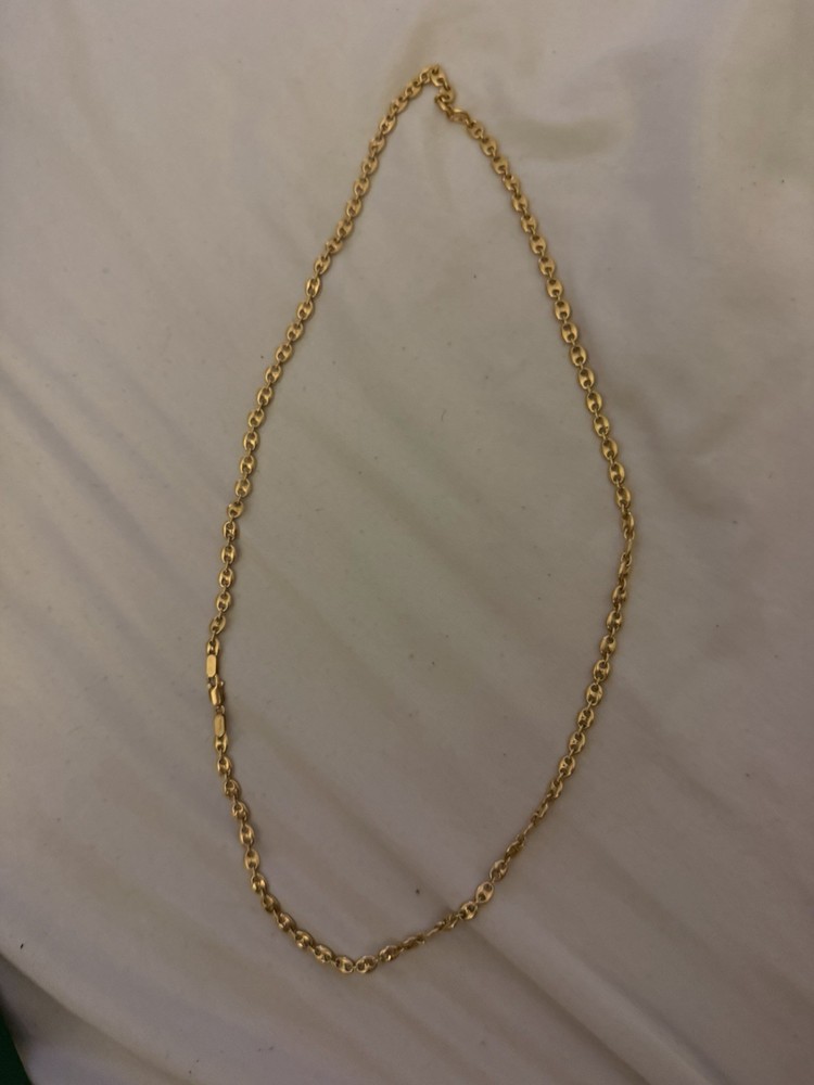 This Solid 18K Gold Chain Necklace in Yellow Gold with a Classic Link design is a timeless piece of fine jewelry perfect for special occasions like anniversaries and birthdays. The lobster closure adds security to the necklace, which is 22 inches in length. The necklace is crafted with nickel-free yellow gold, making it a safe and stylish choice for those with sensitive skin. With a seller warranty included, you can trust that this classic chain necklace is of high quality and will be a beautiful addition to any jewelry collection. 32.7g