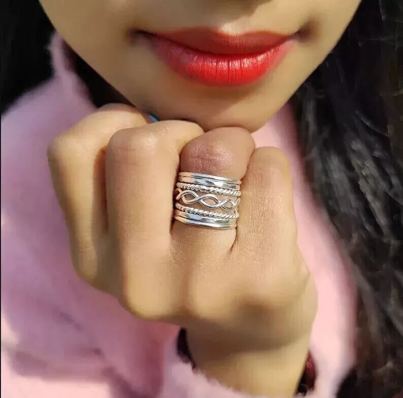 Solid 925 Sterling Silver Set Of Seven Band Ring Statement Handmade RingAll Size