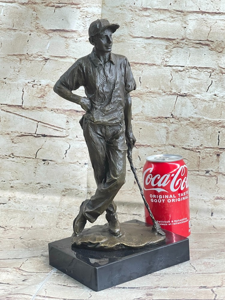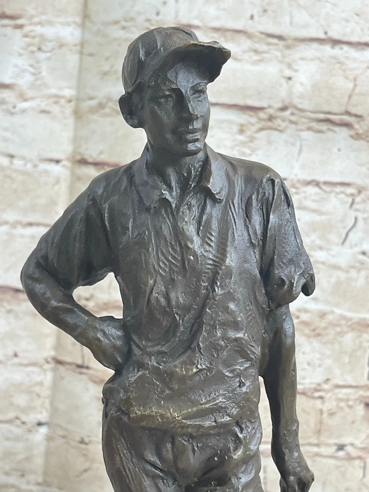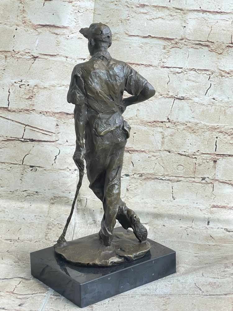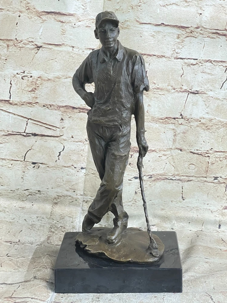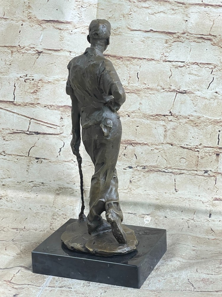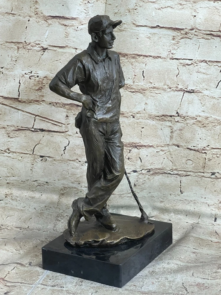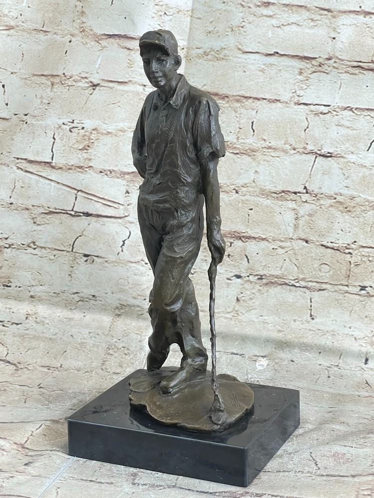Condition : This sculpture is in perfect condition. Bronze Dimensions with Marble Base: Height 13" X Width 6" Marble Dimensions:6" X 5" Height without base:12" Weight:8 LBS Inventory:26EP8394662 This auction presents an opportunity to acquire an elegant bronze statue featuring the renowned golfer Tiger Woods. The statue showcases meticulous detailing and is presented in excellent condition, reflecting the craftsmanship of the artist. Crafted from cast bronze, this sculpture stands out for its authenticity, avoiding the use of resin, plastic, or plaster mixtures. The "Lost Wax Method" was employed in the casting process, ensuring precision and quality in the reproduction of the subject. Mounted on a sleek black round marble base, this bronze statue not only stands as a testament to Tiger Woods' golfing prowess but also serves as a distinguished piece of art. The brown patina finish adds depth and character to the sculpture, enhancing its visual appeal. Whether intended as a tournament trophy or a thoughtful gift for a golf enthusiast, this piece captures the essence of the sport with grace and artistry. Signed by the artist Cesaro, this bronze statue carries a mark of authenticity and craftsmanship. The attention to detail, choice of materials, and overall presentation make it a standout addition for collectors, golf enthusiasts, or anyone appreciating the fusion of art and sports. Bid now to secure this elegant bronze representation of Tiger Woods on a marble pedestal. Champion Golfer Tiger Woods Bronze Sculpture Sport Trophy Statue Figurine Golf Video will open in a new window Using the eBay App? Paste link into a browser window: [isdntekvideo]