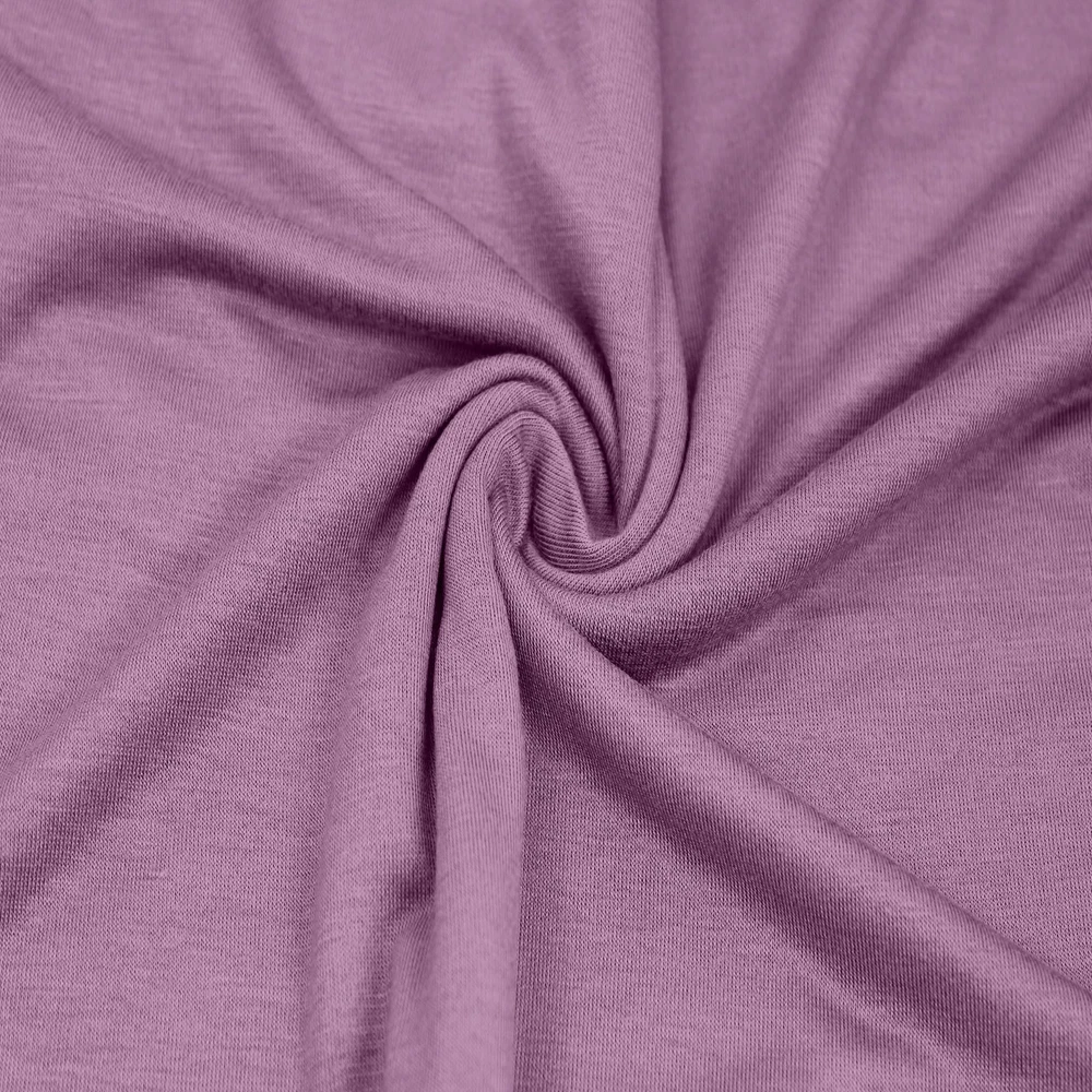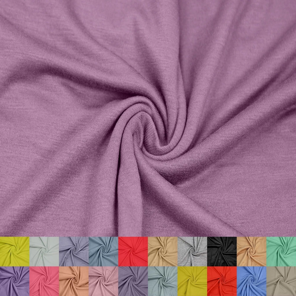 It is breathable and can actually be more moisture-absorbent. It has a very smooth, flowing fit and comfy feel. The Jersey Knit fabric is perfect for T-Shirts, Causal Wears, Stylish Jumpsuits, Dresses, Pajamas, head accessories and all kind of DIY Projects and so much MORE !!!! Width: 58-60" Content: 95% Rayon, 5% Spandex The Jersey Knit fabric is perfect for T-Shirts, Causal Wears, Stylish Jumpsuits, Dresses, Pajamas, head accessories and all kind of DIY Projects and so much MORE Apparel made from this fabric is soft and stretchy, yet durable Product color might slightly vary due to photographic lighting sources or your monitor settings