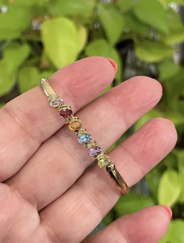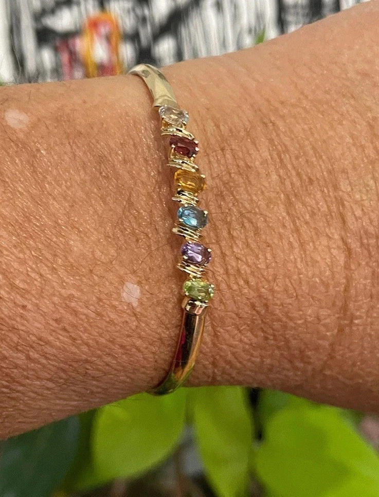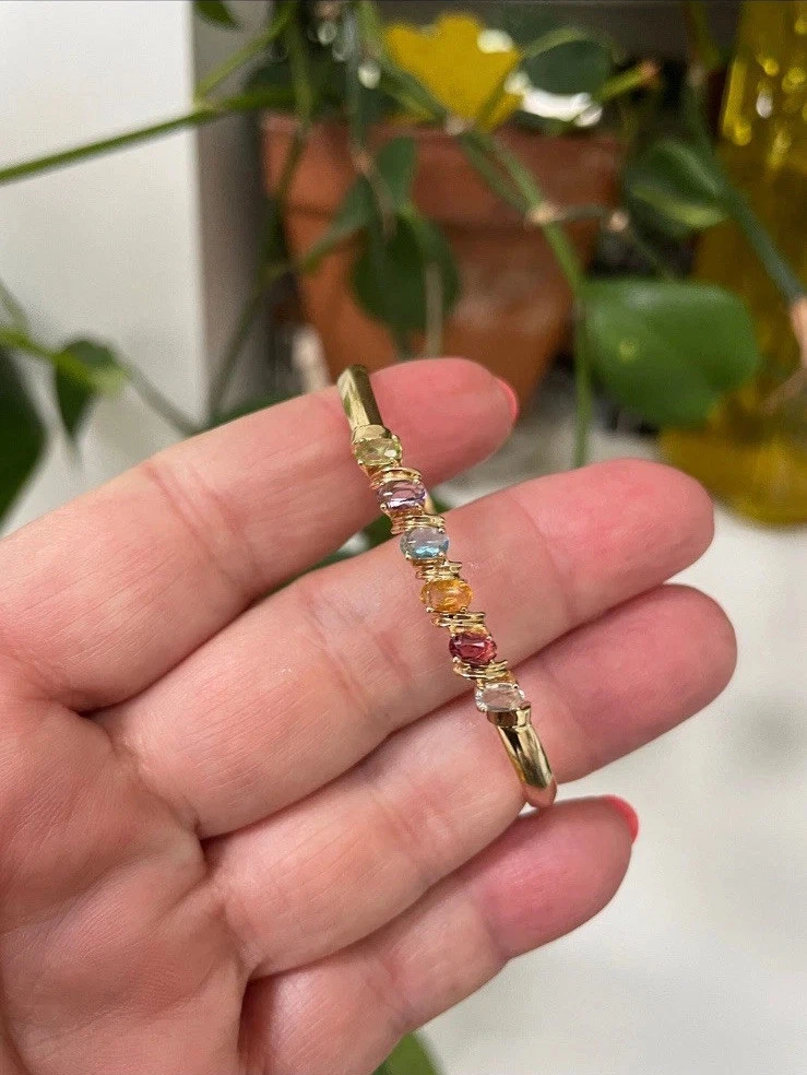 HomeSolid Gold Bangle With Colorful Natural Gemstones