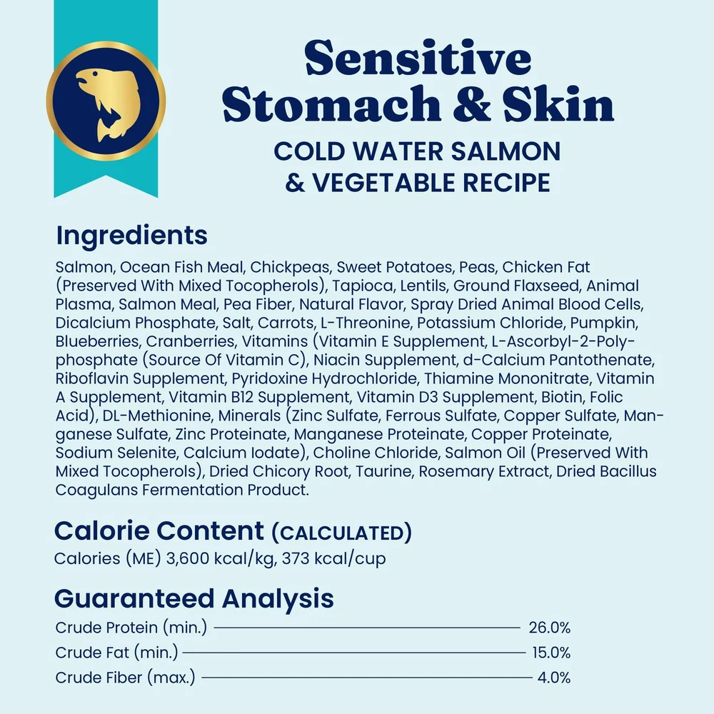 Solid Gold Salmon Dog Food for Sensitive Stomachs – Grain Free & 3.75 Pound Description Features: Salmon Dog Food for Sensitive Stomachs - This salmon dry dog food is made with easy-to-digest cold-water salmon & veggies. Ideal dog digestion food for sensitive stomach, skin health & allergies–great dog dry food for small, medium & large breed dogs Gentle Digestion Dog Food with Probiotics - This salmon dry dog food features 90 million probiotics per lb to support digestion, immune health & gut balance–great for dogs with tummy issues needing sensitive stomach dog food or dog food for digestion Superfoods for Whole Body Health - This sensitive dog food includes superfoods to support immunity, digestion, skin & coat healthor dogs. Adult dog food for small breed, medium breed & large breed dogs. Premium healthy dog food for dogs of all sizes Wholesome Healthy Dog Kibble - Tasty nutrient-rich dog kibble packed with omega 3 & 6 from salmon fish oil, antioxidants & vitamins. A great sensitive stomach kibble for small breed dog food, dry dog food for medium dogs & dry dog food for large dogs High Quality & Made in the USA with Globally Sourced Ingredients - Our grain free dog food dry kibble is made in the USA without BHA, BHT or artificial dyes. A great dog food for digestion, dog food for dogs with senstive stomachs or gentle dogfood Product Details: Handling We will ship all orders within 1 business day of payment. Delivery We Do Not Ship Outside of the Continental US. Return Policy All items qualify for returns within 30 days of receipt. Buyer is responsible for return shipping on any item that is not damaged. Feedback We take our reputation seriously, we buy and sell online, so we understand the value of trust. If you are unsatisfied with your order, please contact us and we will work with you to resolve it to your satisfaction.