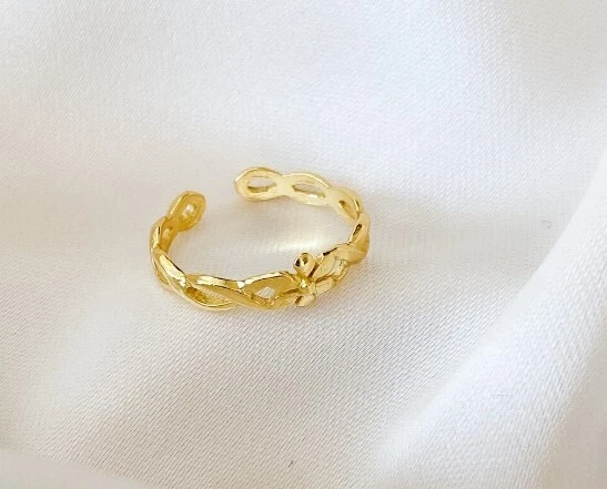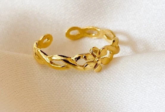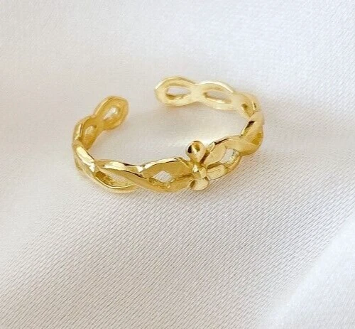 Solid Metal 925 Silver Infinity Flower Adjustable Toe Ring Yellow Gold Plated