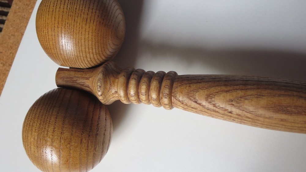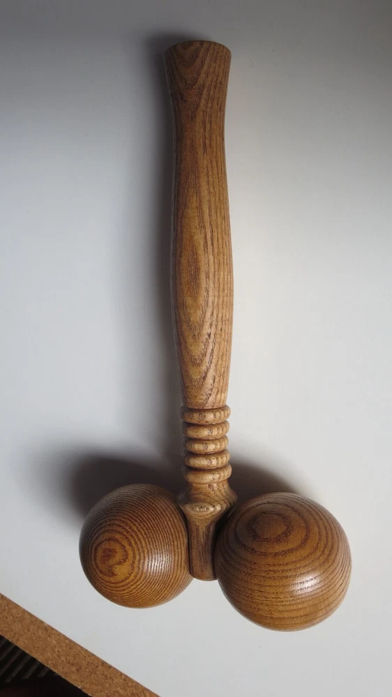 Solid Oak Roller Body Massager with 8 inch handle. 10 inches overall. Very little used. Stuck away in a drawer for 35 years.