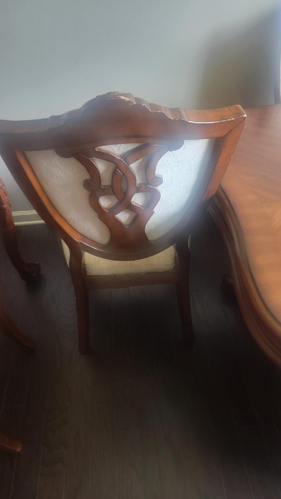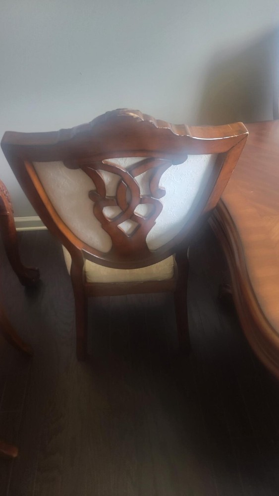 This dining set is a fantastic blend of elegance and durability! The solid oak construction feels sturdy and high-quality, while the pedestal base adds a sleek, modern touch. The spacious table comfortably seats six, making it ideal for family meals or entertaining guests. The chairs are just as well-crafted, with a timeless design that complements any decor. Love how it balances classic charm with practical functionality—definitely worth the investment!