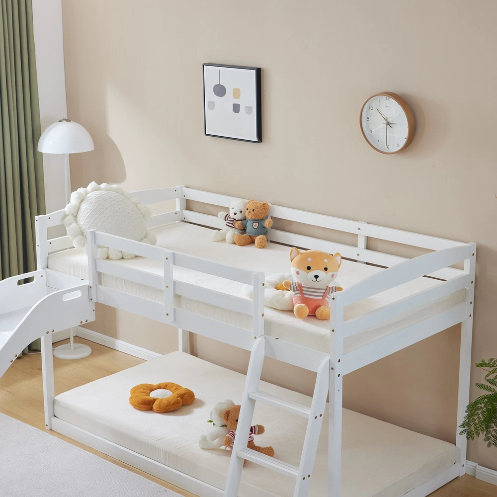 listing template VISIT OUR STORE SIGH UP FOR EMAIL Solid Pine Wood Floor Bunk Beds Frame Kids Bunk Bed for Bedroom Teens Dormitory Introductions Transform your child's bedroom into a fun and functional space with our Twin Size Low Loft Bed with Slide and Ladder. Designed for both play and rest, this classic solid wood bed features an exciting slide and secure ladder, making bedtime an adventure. With a generous 660 lbs weight capacity and 14" safety guardrail, parents can trust in its durability and safety. The low-profile design fits comfortably under standard ceilings, while the stylish grey finish complements any room decor. Features - Twin-size low loft bed with an attached slide for endless fun - Solid wood construction ensures long-lasting durability - Angled ladder with anti-slip steps for safe climbing - 14" safety guardrail provides extra security on the top bunk - Impressive 660 lbs weight capacity for superior strength - Space-saving design ideal for small bedrooms - Neutral grey finish matches various decor styles - Smooth, rounded edges for added child safety Specifications - Material: Solid wood - Dimensions: 77.56"L x 41.73"W x 47.44"H - Bed Size: Twin / Twin Over Twin - Weight Capacity: 660 lbs - Safety Features: 14" guardrail, anti-slip ladder steps - Color: Grey White - Assembly: Required Package Includes - 1 x Twin low loft bed frame / 1 x Twin Over Twin bed frame Shipping Policy 1. Ship worldwide from New Jersey by reliable shipping companies -- USPS, UPS, FEDEX, DHL, etc., and only to VERIFIED PAYPAL ADDRESS. Transport Delivery ETA. Package handling only takes 1 business day at our warehouse, so please make sure entering correct payment and shipping information before checking out. Once your payment is completed, we are not going to accept any more changes to your order. 2. International Buyers – Please Note: a. Import duties, taxes and charges are not included in the item price or shipping charges. These charges are the buyer's responsibility. b. Please check with your country's customs office to determine what these additional costs will be prior to bidding/buying. 3. Please check your shipping address carefully before checkout, it can't be changed if order completed. 4. Orders placed on weekend will be shipped within 2 days.Notification of shipment with tracking number will be sent to buyers. 5. Standard shipping: 2-7 business days Expedited Shipping: 2-3 business days One-day Shipping: 1 business day International shipping: Varies 6.Ship within 1 business day once payment completed. Notification of shipment with tracking No. will be sent to buyer. 7.We offer discounts for combine shipping. Please contact us first if you need combine shipping, and an invoice with discount will be sent to you. 8.Please allow 5 business days for delivery to US destinations on any eBay orders and 14 business days for delivery to any International destinations. We highly recommend our buyer choose priority/expess mail for international delivery which is much more stable. Return Policies 1. Refunds given only if item DOA and cannot be replaced via PAYPAL . If so, Please contact us with 5 days since you receive the item and and return to us within 30 days from the delivery date for exchange or refund. 2. If you need return, please contact our customer service representative, let us know the detailed problem and send us some pictures for confirmation. Payment Payment should be sent within 8(EIGHT) days of auction closing. Feedback If you are dissatisfied for any reason, please do not be quick to leave negative/neutral feedback. We work hard to make sure EVERY CUSTOMER 100% SATISFIED and resolve any problem for you. Work Time Work Time: Monday to Saturday About Us | Newsletter| Feedback| Contact Us Copyright © 2022 LikeDeal. All rights reserved. 无标题文档 Solid Pine Wood Floor Bunk Beds Frame Kids Bunk Bed for Bedroom Teens Dormitory Introductions Transform your child's bedroom into a fun and functional space with our Twin Size Low Loft Bed with Slide and Ladder. Designed for both play and rest, this classic solid wood bed features an exciting slide and secure ladder, making bedtime an adventure. With a generous 660 lbs weight capacity and 14" safety guardrail, parents can trust in its durability and safety. The low-profile design fits comfortably under standard ceilings, while the stylish grey finish complements any room decor. Features - Twin-size low loft bed with an attached slide for endless fun - Solid wood construction ensures long-lasting durability - Angled ladder with anti-slip steps for safe climbing - 14" safety guardrail provides extra security on the top bunk - Impressive 660 lbs weight capacity for superior strength - Space-saving design ideal for small bedrooms - Neutral grey finish matches various decor styles - Smooth, rounded edges for added child safety Specifications - Material: Solid wood - Dimensions: 77.56"L x 41.73"W x 47.44"H - Bed Size: Twin / Twin Over Twin - Weight Capacity: 660 lbs - Safety Features: 14" guardrail, anti-slip ladder steps - Color: Grey White - Assembly: Required Package Includes - 1 x Twin low loft bed frame / 1 x Twin Over Twin bed frame Shipping + 1. Ship worldwide from New Jersey by reliable shipping companies -- USPS, UPS, FEDEX, DHL, etc., and only to VERIFIED PAYPAL ADDRESS. Transport Delivery ETA. Package handling only takes 1 business day at our warehouse, so please make sure entering correct payment and shipping information before checking out. Once your payment is completed, we are not going to accept any more changes to your order. 2. International Buyers – Please Note: a. Import duties, taxes and charges are not included in the item price or shipping charges. These charges are the buyer's responsibility. b. Please check with your country's customs office to determine what these additional costs will be prior to bidding/buying. 3. Please check your shipping address carefully before checkout, it can't be changed if order c