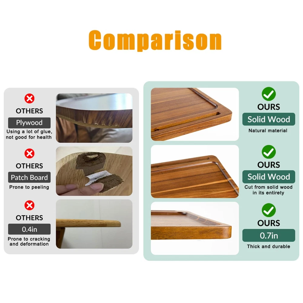 This acacia wood couch table is a game-changer! The 360° swivel and adjustable height make it super versatile—perfect for meals, work, or lounging. The natural wood grain looks elegant, and the sturdy build feels premium. Love the phone/tablet slot and how it slides neatly under furniture to save space. Waterproof and durable, it’s ideal for daily use. A must-have for cozy nights on the couch or breakfast in bed!