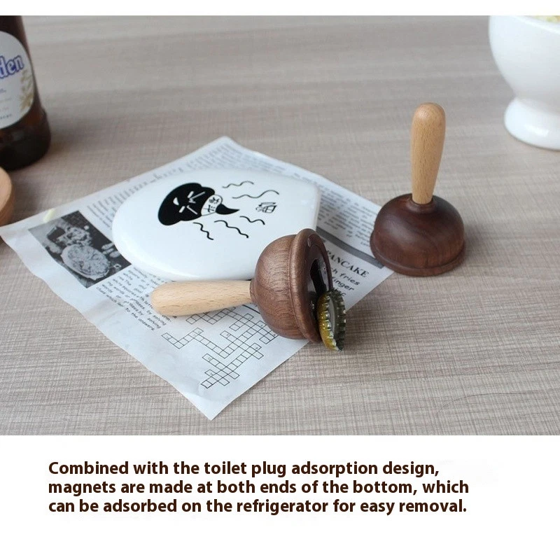 Solid Wood Beer Bottle Opener with Creative Fridge Magnet Design for Stylish Practical Kitchen Accessories