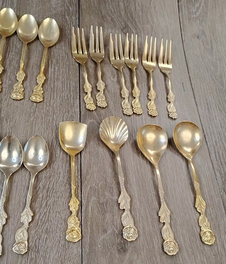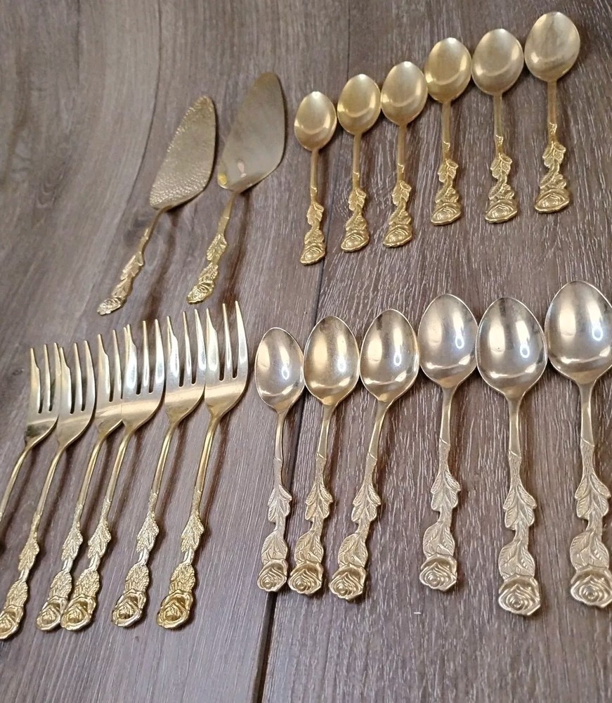 Service For: 10 MPN: N/A Department: Adults Set Includes: Cake/Pie Slice, Fork, Knife, Server, Serving Spoon, Spoon Handle Material: Gold Plated Model: 23-24K Type: Flatware & Serving Set Occasion: All Occasion Country/Region of Manufacture: Germany Finish: Glossy UPC: Does not apply Color: Gold gtin13: Does not apply Brand: Solingen Material: Stainless Steel Style: Victorian