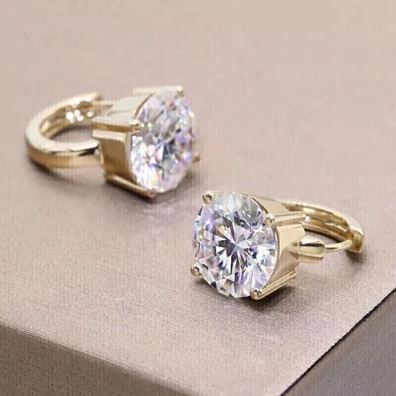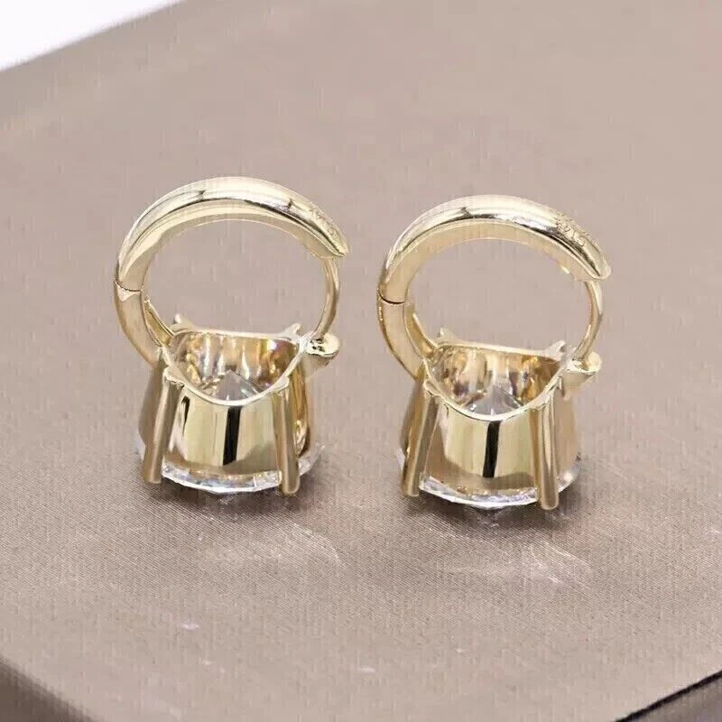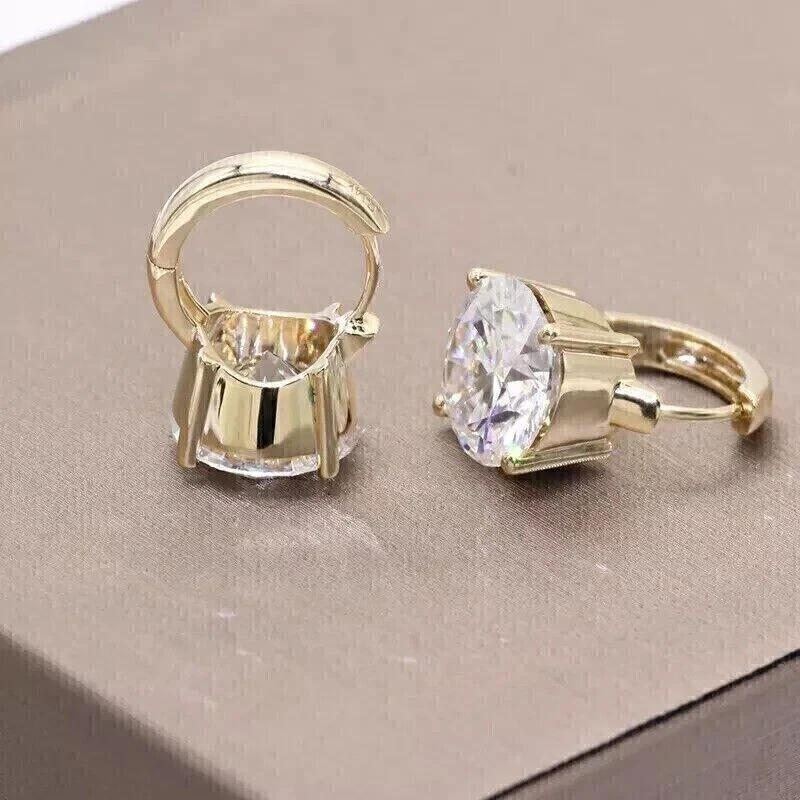 Solitaire Hoop Earrings 2Ct Round Cut Simulated Diamond 14K Yellow Gold Plated