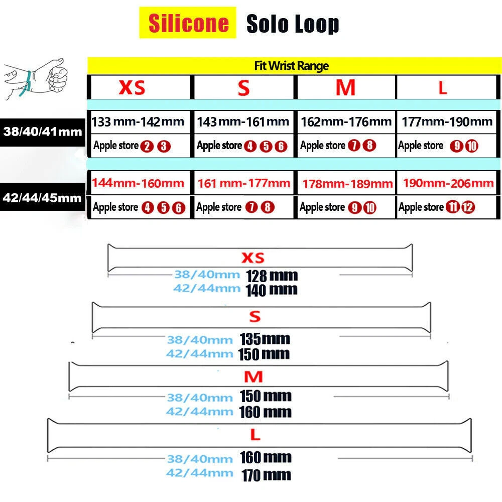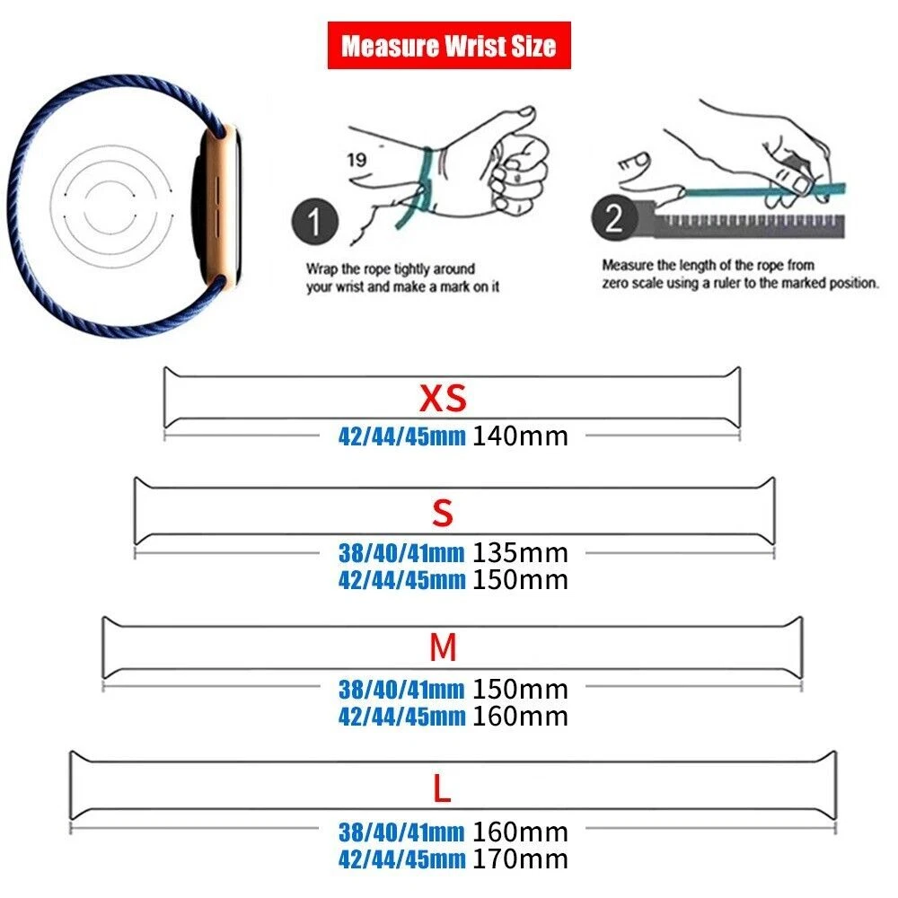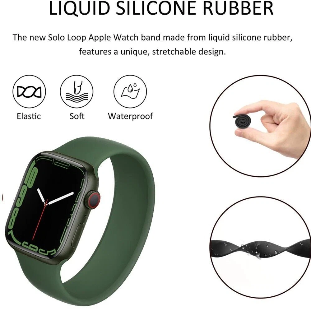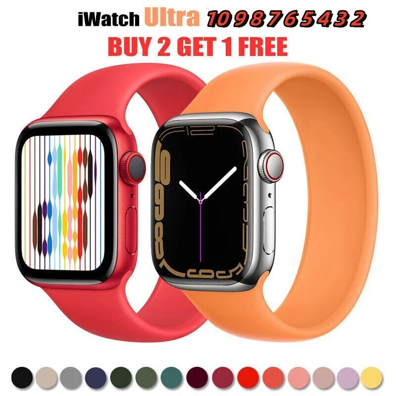 Strap for Apple Watch Ultra 8 7 Band 38mm 40mm 41mm iWatch Series 6 SE 5 4 Elastic Belt Silicone Solo Loop Bracelet Apple Watch Band 42mm 44mm 45mm 49mm Series10 42mm 46mm Payment Methods PayPal, PayPal Credit, Credit card or debit card, Apple Pay, Google Pay, Spendable funds, Payment upon pickup Free Shipping We ship to your eBay or PayPal address If anything needs to change send us Delivery in 2-3 working days. Returns & Refunds Just Contact us immediately, Please! You can return any item purchased within 30 days from the delivery date. PRODUCT INFORMATION This product has a unique, stretchy design and is compatible with Apple Watch. The band size corresponds to Apple's official wrist measurement method: if your watch is 38/40/41mm, choose 38/40/41mm XS/S/M/L; if it's 42/44/45mm, choose 42/44/45mm XS/S/M/L (refer to the dimensional drawing for details). It's very comfortable to wear because it doesn't have clasps, buckles, or overlapping parts, and is easy to slip on and off. The band has a smooth finish because it's specially treated with UV, and it's also swim-proof, sweat-proof, and dirt-resistant, making it suitable for various occasions. There are many color options available, allowing you to match the band with different outfits. COMPATIBILITY : Apple Watch Series Ultra 8 7 6 5 SE 4 3 CASE SIZE: 45mm & 44mm & 42mm & 41mm & 40mm & 38mm BRACELET: Silicone Package Includes: Watch band (Not including the Apple Watch) Contact us: We can be contacted anytime through eBay messages if you have questions, comments, or product requests. We will respond to you within 24 hours and do our best to help you out! We encourage our customers to contact us with any questions or concerns! We'd like to be sure you are completely satisfied with your purchase. Thank you for visiting our store! On Nov 21, 2024 at 05:59:41 PST, seller added the following information: