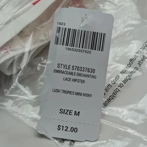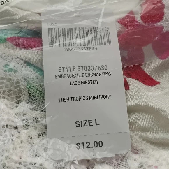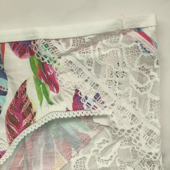 All photos are taken by Goob's Closet & Boutique and may not be reused without permission. This item is listed on multiple platforms and may sell elsewhere without notice. If you're interested, we recommend purchasing now to ensure availability. This hipster panty provides modern back coverage with a mid-rise fit that flatters and feels wonderful. The enchanting lace trim at the waist and back adds a touch of magic, making every day feel a little more special. Crafted from soft, breathable stretch fabric, this panty is a joy to wear, moving with you in perfect harmony. The elastic at both the waist and leg openings ensures a fit that's both secure and comfortable, while the picot trim at the leg openings adds a charming detail. It's tag-free for your ultimate comfort and partially made from recycled materials, blending eco-consciousness with style. Plus, a 100% cotton gusset ensures breathability where it matters most. Details Hipster Style Moderate/Modern Back Coverage Mid Rise Enchanting Lace Trim at Waist and Back Soft and Breathable Stretch Fabric Elastic at Waist and Leg Openings Picot Trim at Leg Openings Tag-Free Design Made Partially from Recycled Materials 100% Cotton Gusset Style No. 570337630 Color: Lush Tropics Mini Ivory Material Body: 95% Rayon, 5% Spandex OR 90% Rayon, 10% Spandex Lace: 80% Polyamide, 20% Spandex OR 60% Recycled Nylon, 25% Nylon, 15% Spandex Elastic Leg: 81% Spandex, 19% Polyester Elastic Waist: 83% Polyamide, 17% Spandex Gusset: 100% Cotton Care Machine Wash Measurements Soma Size Small (S) will fit US Size 4-6, Waist 28-29 inches, Hips 37.5-38.5 inches best. Soma Size Medium (M) will fit US Size 8-10, Waist 30-31 inches, Hips 39.5-40.5 inches best. Soma Size Large (L) will fit US Size 12-14, Waist 32.5-34 inches, Hips 42-43.5 inches best. Soma Size Extra Large (XL) will fit US Size 16-18, Waist 35.5-37 inches, Hips 45-46.5 inches best. Measurements Soma Size S (Small) will fit US Size 4-6, Waist 28-29 inches, Hips 37.5-38.5 inches best. Soma Size M (Medium) will fit US Size 8-10, Waist 30-31 inches, Hips 39.5-40.5 inches best. Soma Size L (Large) will fit US Size 12-14, Waist 32.5-34 inches, Hips 42-43.5 inches best. Soma Size XL (Extra Large) will fit US Size 16-18, Waist 35.5-37 inches, Hips 45-46.5 inches best.
