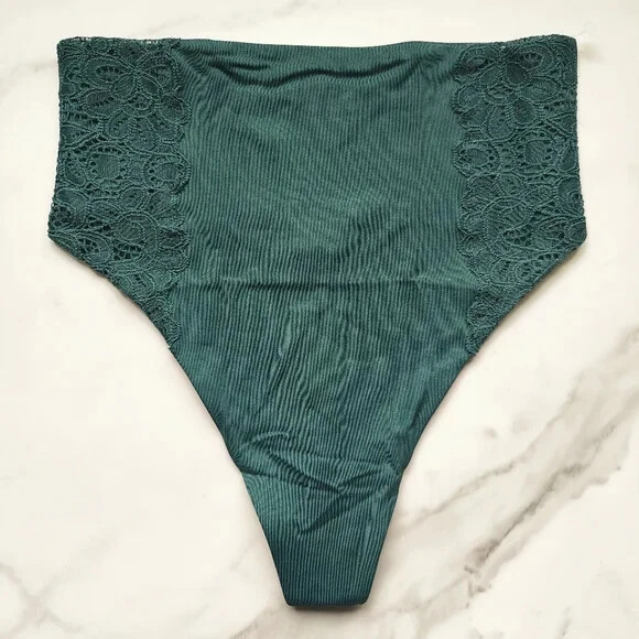 All photos are taken by Goob's Closet & Boutique and may not be reused without permission. Goob's Closet & Boutique lists on multiple platforms. If you choose to wait or "Watch", the listing may sell out on another platform, and it will no longer be available for purchase on eBay without notice to you. This thong panty is a game-changer in the lingerie world, blending retro vibes with modern shaping and a touch of eco-consciousness. Imagine a thong that not only embraces the minimalist style but also provides a high-rise fit for a seamless and flattering silhouette. The double-layered front panel offers just the right amount of compression and stomach smoothing – total confidence booster! The soft and stretchy microfiber fabric is practically invisible under clothing, ensuring a sleek look for any outfit. The stay-put silicone at the back keeps the panty securely in place, and the no-ride, no-roll, and no-show features make it the ultimate worry-free choice. Now, here's the stylish twist – the decorative lace at the hips. And get this – it's not just any lace; it's made partially from recycled materials, making it a win for fashion and the planet. Details Thong Style Minimal Back Coverage High Rise Double-Layered Front Panel for Light Compression and Stomach Smoothing Stay-Put Silicone at Back Soft and Stretchy Microfiber Fabric Invisible under Clothing No Ride. No Roll. No-Show Decorative Lace at Hips Tag-Free Design Made Partially from Recycled Materials 100% Cotton Gusset Style No. 570356871 Material Body: 90% Nylon, 10% Spandex Lace: 87% Recycled Nylon, 11.6% Nylon, 7.4% Spandex Gusset: 100% Cotton Care Machine wash warm Measurements Soma Size S (Small) will fit US Size 4-6, Waist 28-29 inches, Hips 37.5-38.5 inches best. Soma Size M (Medium) will fit US Size 8-10, Waist 30-31 inches, Hips 39.5-40.5 inches best. Soma Size L (Large) will fit US Size 12-14, Waist 32.5-34 inches, Hips 42-43.5 inches best. Soma Size XL (Extra Large) will fit US Size 16-18, Waist 35.5-37 inches, Hips 45-46.5 inches best.