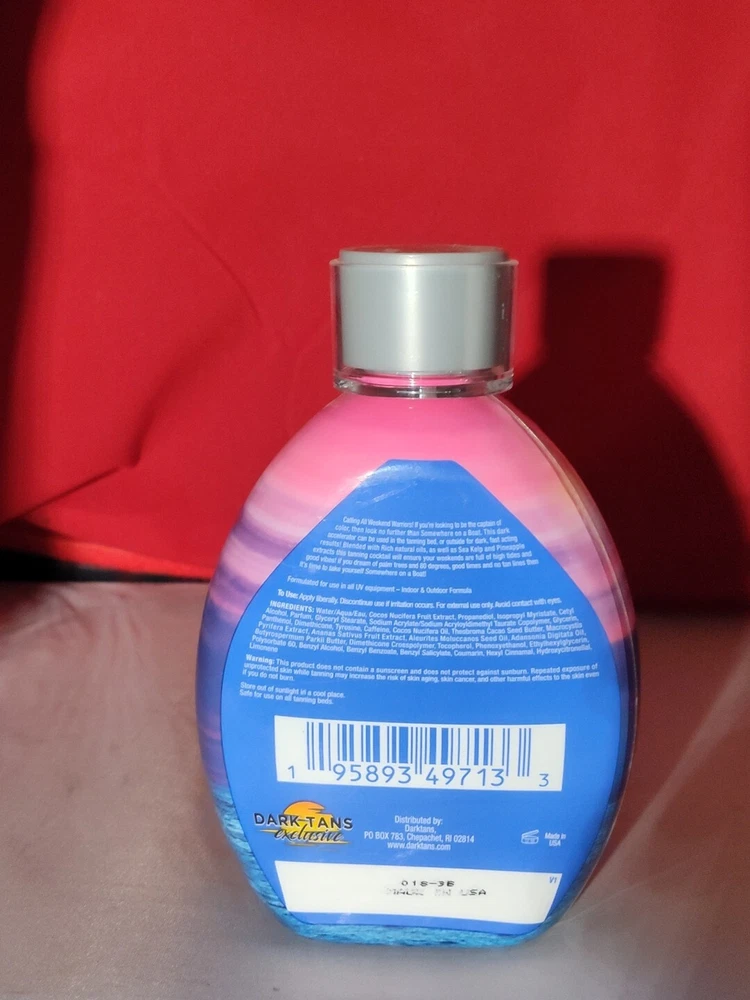 Size: 13.5oz Volume: 13.5 fl oz Formulation: Cream, Lotion Country of Manufacture: United States Brand: Darktans Color: White gtin13: 195893497133 UPC: 195893497133 Country/Region of Manufacture: United States SPF: None Type: For Indoor Use Features: Tan Accelerator