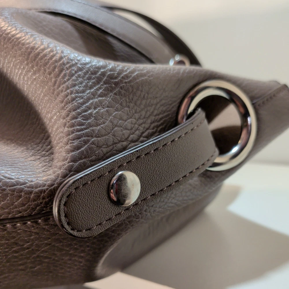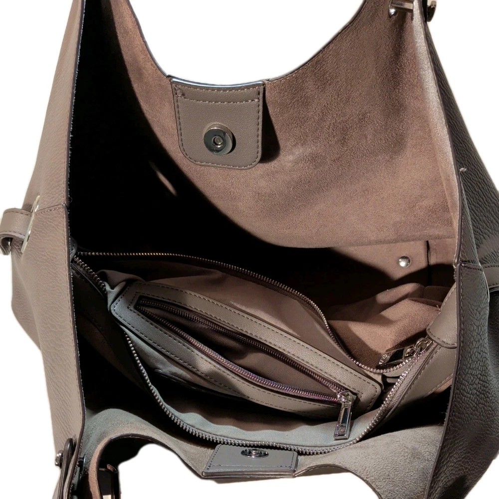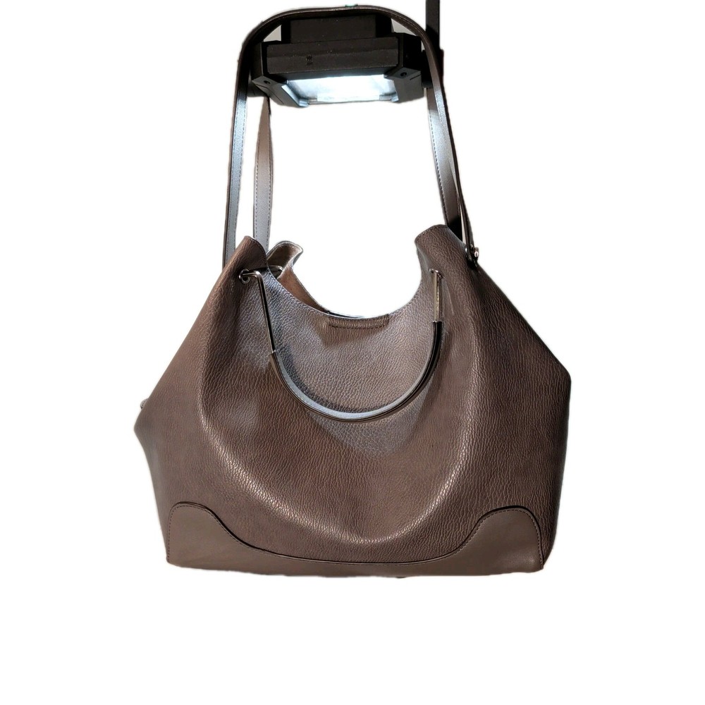 The Sondra Roberts Squared Vegan Leather Double Handle Shoulder Bag in Tan Large is a stylish and versatile accessory for women. This square-shaped bag features double handles in gray with silver hardware accents, making it perfect for travel, casual outings, or workwear. The faux leather exterior in tan with a matte finish adds a touch of sophistication, while the soft inner pockets and faux suede lining provide practicality and comfort. Detachable strap and inner pockets add extra functionality to this designer bag from the Sondra Roberts Squared collection.