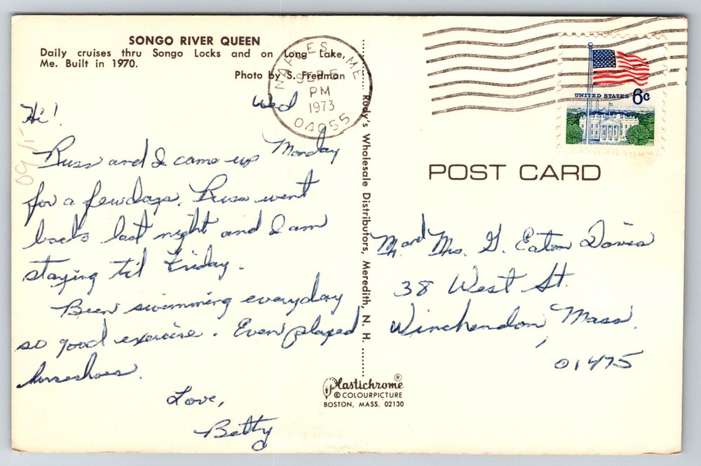 Songo River Queen Cruise at Songo Locks Long Lake ME 1970s Postcard AA24