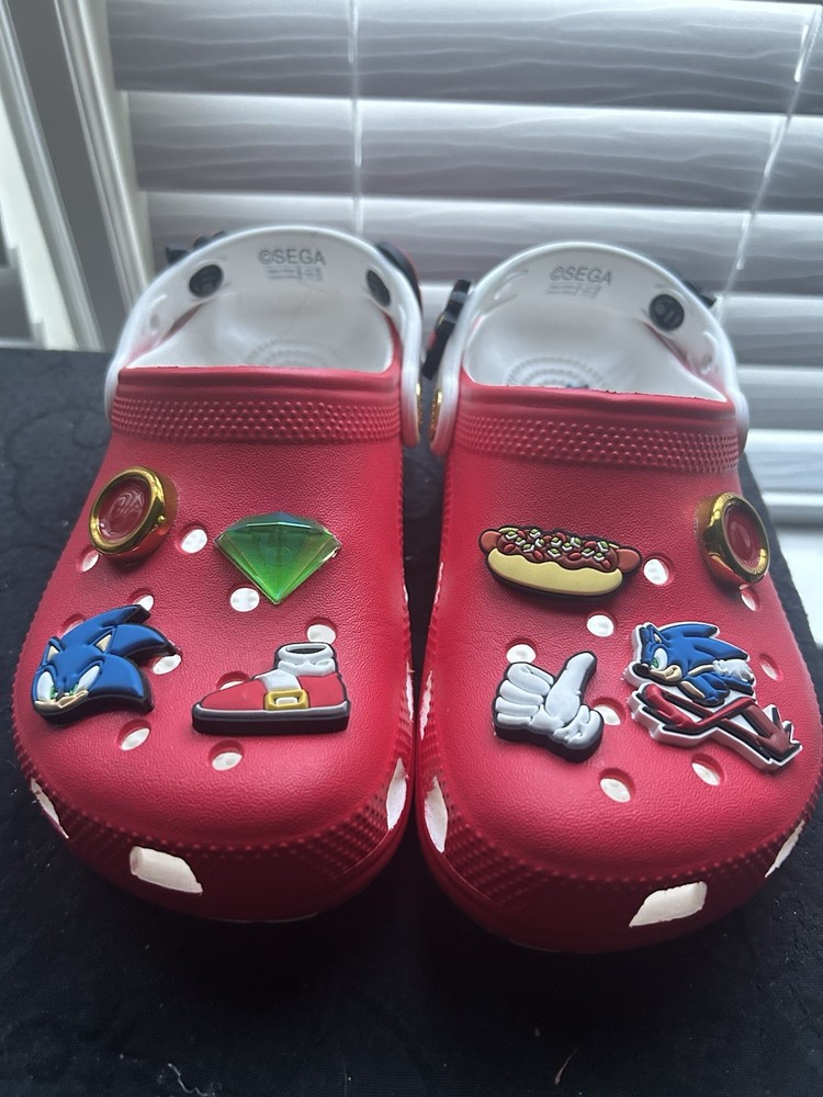Like new red sonic crocs size 2 youth only worn one time in great condition
