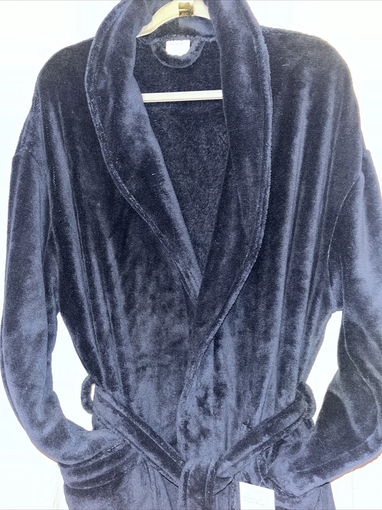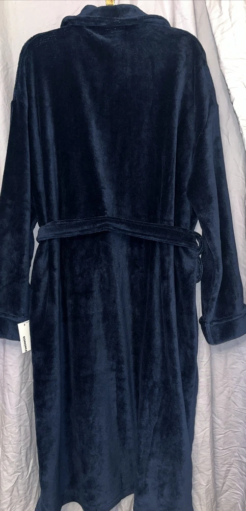 Indulge in luxury and comfort with this Sonoma BathRobe. Made of 100% polyester faux fur, this robe is perfect for lounging and pampering. The mineral navy color adds a touch of elegance to the robe's collared neckline and long sleeves with tie closure. This unisex bathrobe comes in size L/XL and features 2 sets of belt loops and 2 pockets. It is also machine washable for easy care. Ideal for spa days or relaxing evenings at home, this Sonoma BathRobe is the perfect addition to your loungewear collection.