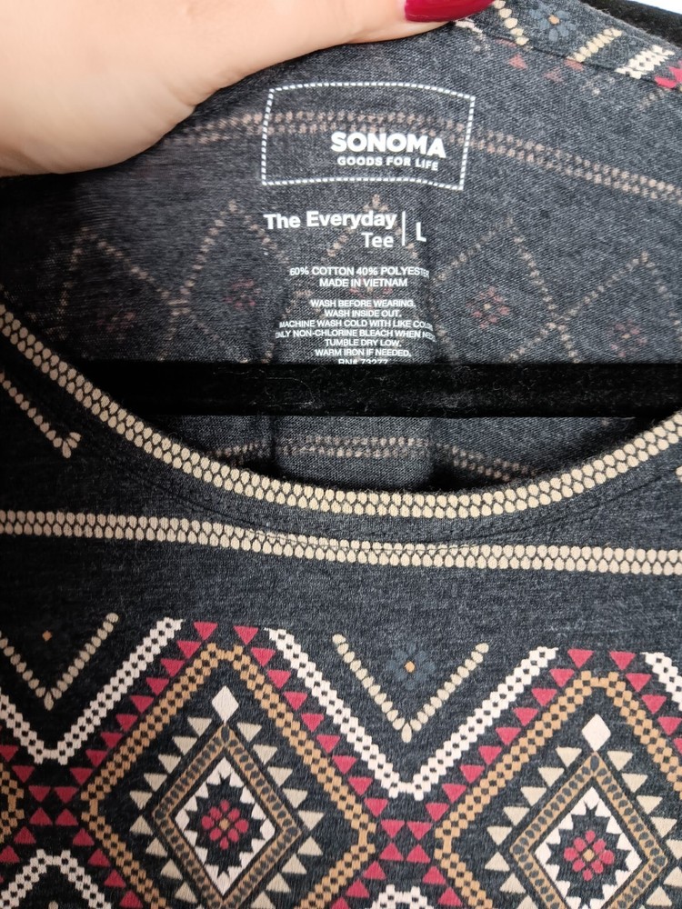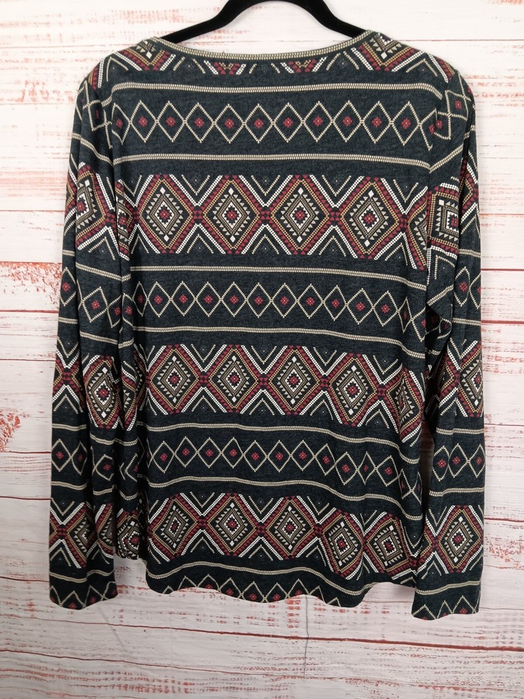 Sonoma The Everyday Tee Women's Large Aztec Neck Long Sleeve Casual
