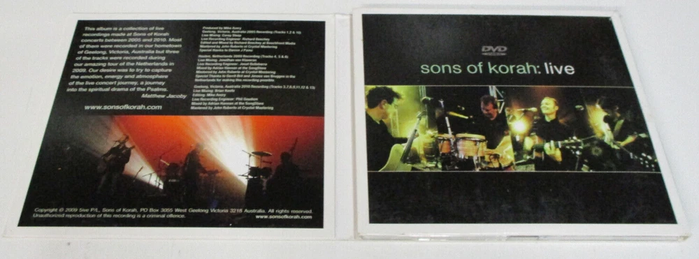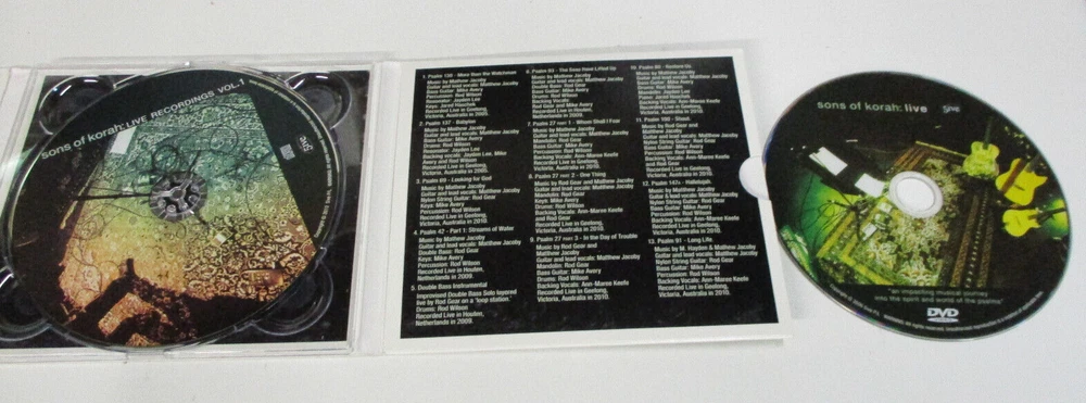CD Details: Sons of Korah, Live Recordings Vol 1 Sons of Korah Song Titles - see photo CD is good DVD is good - light scratches which don't affect play Digipak case is good, moderate wear Buyer to pay postage where indicated. Please contact me prior to bidding if you require further information.