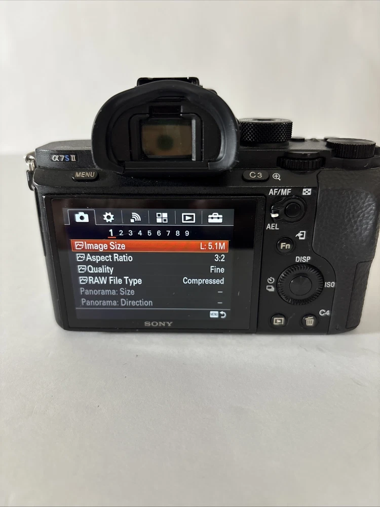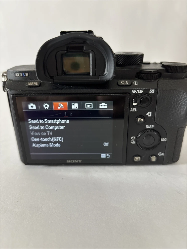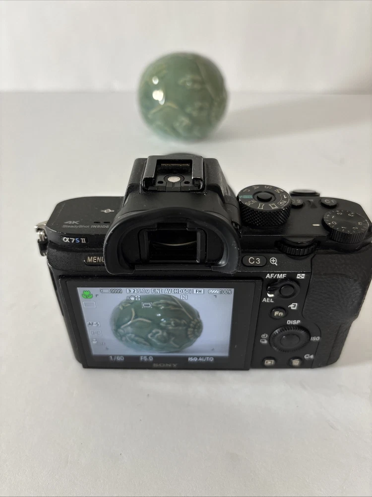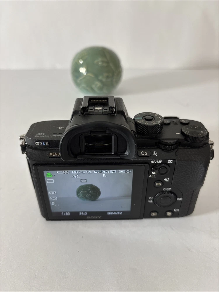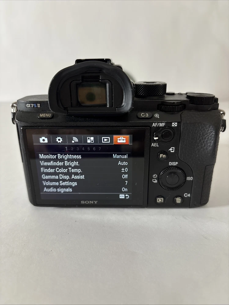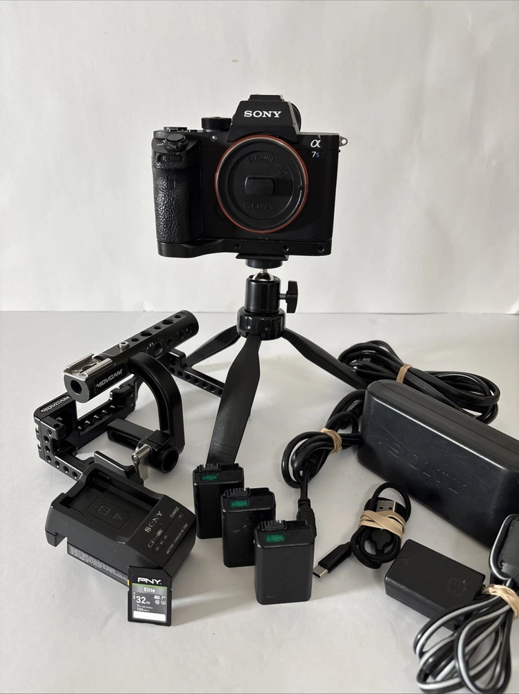 Sony A7S II 24.3MP Full Frame Mirrorless Digital Camera Body w/Movcam Cage 60618 This preowned camera is in very good condition. There are light scratches on LCD - see pictures. This camera has been professionally maintained. When tested in auto mode with a lens, the camera works very well. Included: Camera, Latching Body Cap, 3 Batteries, Charger, 32GB SD Card, Micro HDMI Cord, USB Cord, Power Supply with Dummy Battery, Small Tripod, Movcam Cage w/Accessories, Shutter Count: 60618 The Sony A7S II is a 24.3MP full-frame mirrorless digital camera with interchangeable lenses, built-in Wi-Fi, and 4K video recording capabilities. It features a CMOS sensor, image stabilization, and a tiltable screen. The camera body has a shutter count of 14662 and includes a charger.