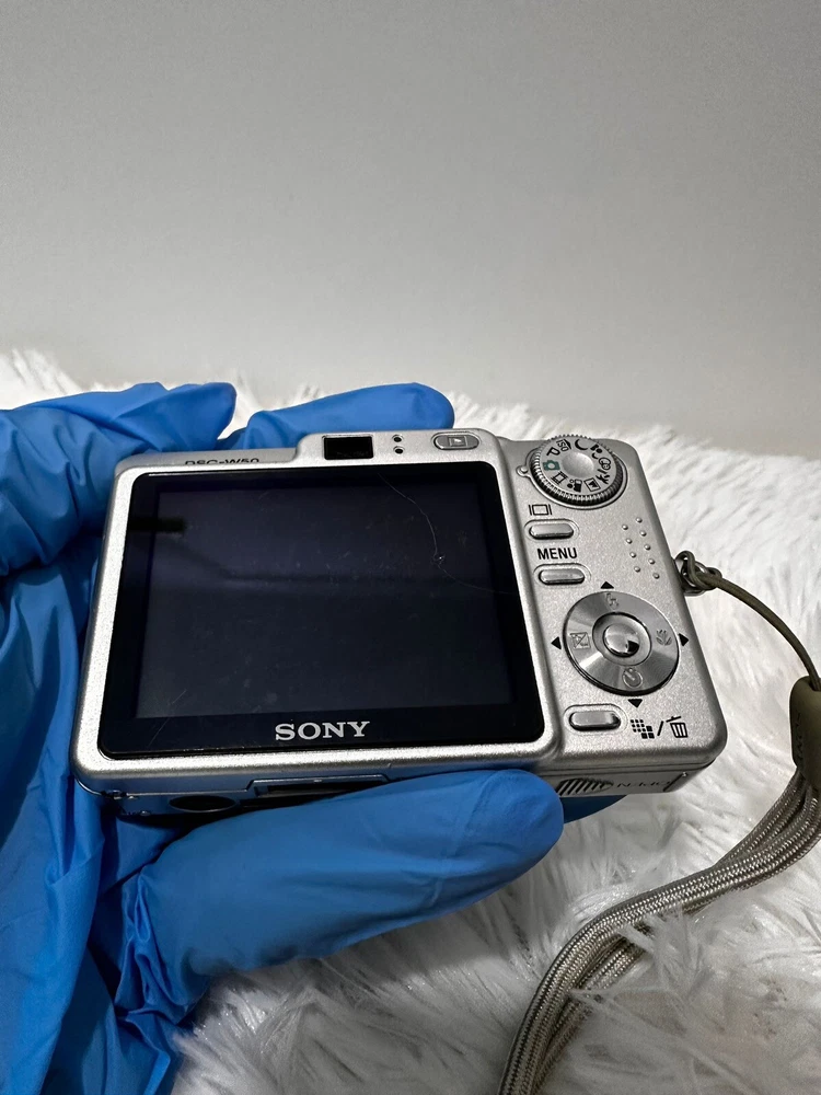 This listing is for a fully working Sony Cybershot DSC-W50 6.0MP Silver Digital Camera with its original box. Camera is fully tested & fully works. Camera is in fantastic condition, with very light use and very minor scratches in places. Comes with charger, av leads, software disk, manual and original box. Sd card is not included (readily available). Red camera shown in the photos is for demonstration only and is NOT INCLUDED! Any questions please feel free to ask.