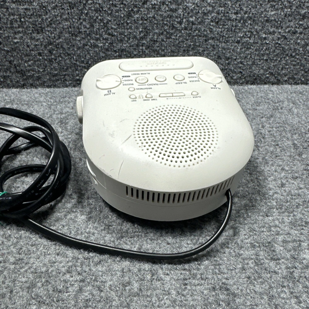 This Sony Dream Machine AM/FM Dual Alarm White Clock Radio Model ICF-C318 is a vintage/retro style clock radio that will make a great addition to any bedroom. With a digital display, this clock radio features dual alarms, a 24-hour display, AM/FM radio, battery backup, snooze function, and a quartz movement. The clock radio is made of plastic and has a white finish. It weighs 8.8 oz and measures 6 inches in length, less than 15 inches in height and width. This original Sony product has a manufacturer warranty of 1 year and was manufactured in China. It is compatible with any adult bedroom and has a digital number type. The clock radio is part of the Sony product line and has a model number of ICF-C318.