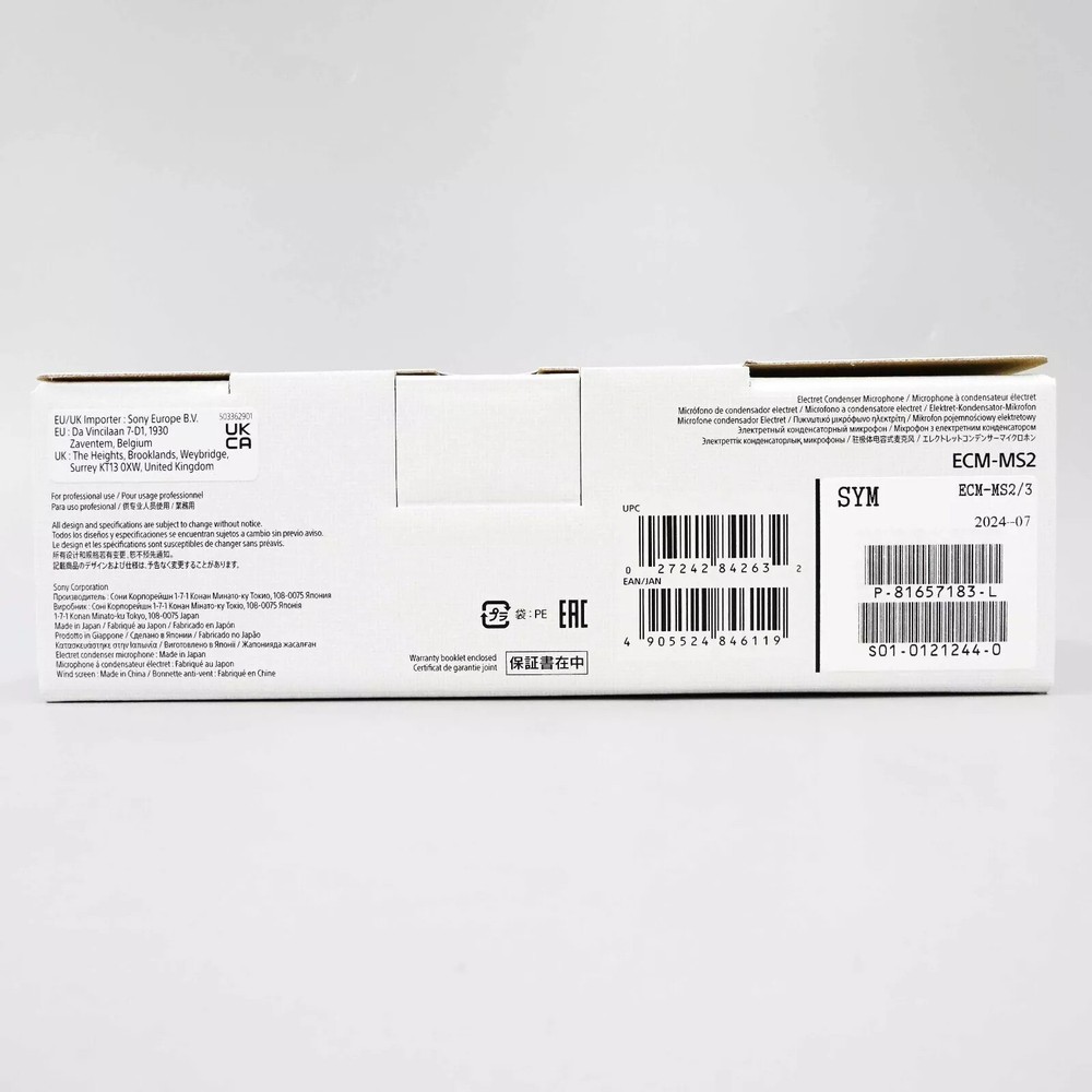 Sony Electret Condenser Microphone ECM-MS2 Description About This Items Cost-effective stereo microphone ECM-MS2 Sony electret condenser microphone GTIN (Global Trade Identification Number) 04905524846119 Manufacturer Sony Color Anthracite Batteries included No Battery used No Brand name SONY Model number ECM-MS2 Release year 2015 Product size 13.7 x 2.4 x 2.4 cm; 160 g Shipping We always send the item with a tracking number. So please place an order without any concern on delivery. You can always track the delivery status. Shipping is only available to the address registered in eBay. If you want us to send another address, please change your address on eBay and then place an order. Shipping is available from Monday to Friday. Weekends are not available because freight (shipping) companies are closed. We do not mark merchandise values below value or mark items as “gifts” – Japan, US and International government regulations prohibit such behavior. About Importer's Obligation Import duties, taxes, and charges are not included in the item price or shipping cost. These charges are the buyer's responsibility. Please check with your country's customs office to determine what these additional costs will be prior to bidding or buying. Thank you for your understanding.