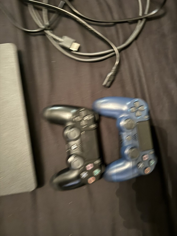 Pre-Owned PS4 Slim Console with Dual Controllers, Ready for Gaming Action