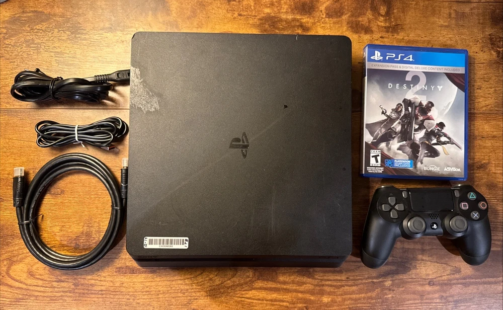 Sony PS4 PlayStation 4 Slim 1TB Console System Bundle With Controller power Cord | Authentic US Version. This is a USED console with wear/tear/stains/obvious signs of use. If you need a perfect console this one is NOT for you. Everything you need to get started gaming on the Sony PlayStation 4 Platform. Here is what is included with this bundle. LOT OF ONE CONSOLE 1. Sony PlayStation 4 1TB console Model: CUH-2215B Software: 11.50 updated as pictured Serial: **as seen in the pics** The console has been tested/works as intended. 2. Sony PlayStation 4 Controller: One Original Wireless OEM controller - tested with minimal noticeable drift USED condition with wear (color varies) 3. Power Cord 4. HDMI 5. Data/charging controller cable 6. game as pictured (game may vary if out of stock) Any downloaded/e-games that may exist on the console may be immediately deleted/erased if the console is factory reset, the user(s) is deleted, the user logs out remotely from there online account. If any exist on your console enjoy them while you can. **Nothing else is included** This item is returnable but must be returned in the exact same condition as shown. (a 10% restocking fee will apply to returns) If the item is returned missing any items listed above or any internal parts a return will be approved minus the retail cost of the item(s) missing. If this is your first purchase on ebay please contact us prior to purchase - thanks. The item has been marked with proprietary invisible ink and assigned an alphanumeric cypher to ensure its authenticity/safety. Questions, please ask prior to purchase, thanks. The price is FIRM, thanks for understanding. (We can not respond to unsolicited offers) Ships USPS / FEDEX / UPS Ground - a signature may be required upon delivery. (No freight forwarders) Would make a wonderful holiday gift 🎁